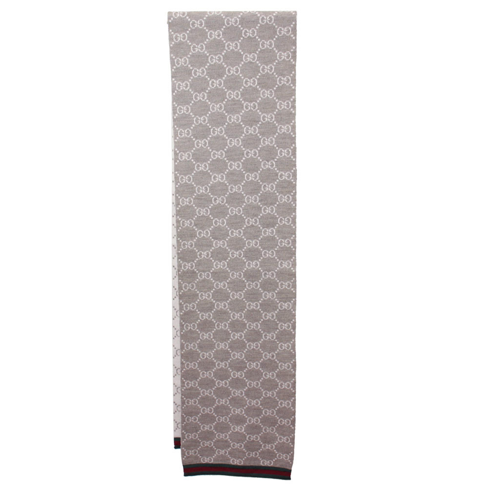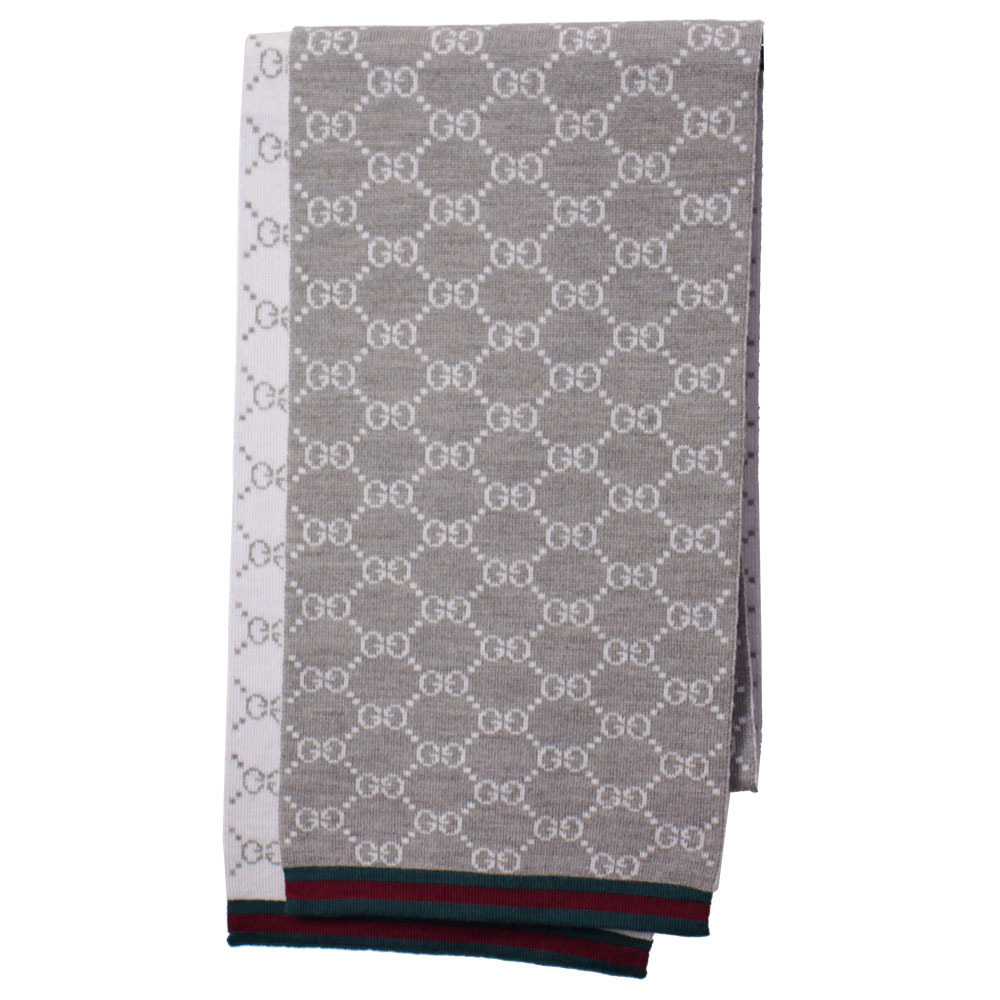 グッチを代表するGG柄と両端にウェビングラインが施されたマフラーです。 男女兼用で使用でき、通勤時のスーツスタイルやカジュアルスタイルでも対応できる非常に使い勝手の良いデザインです。 | |