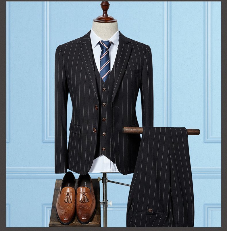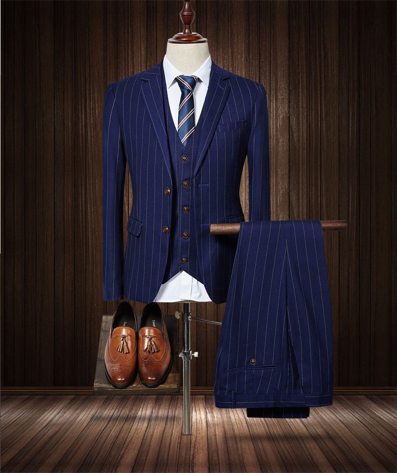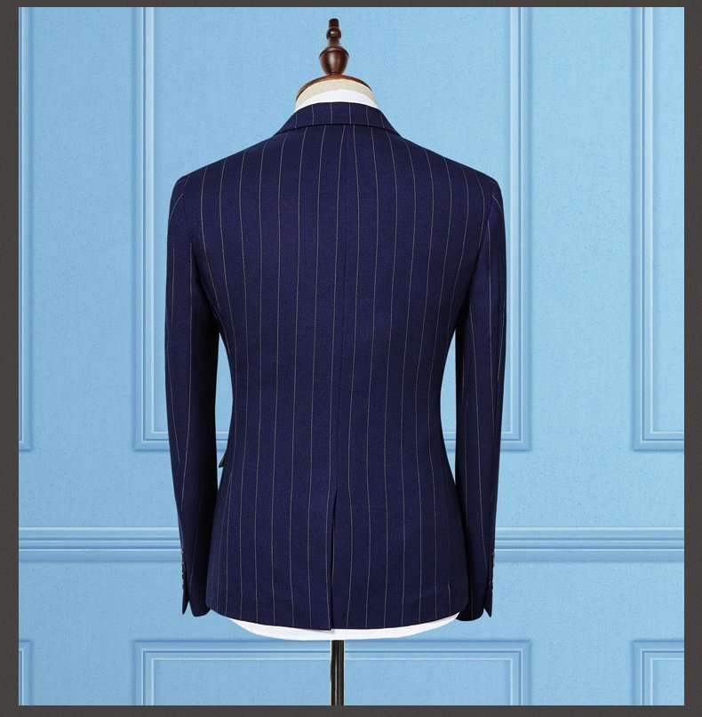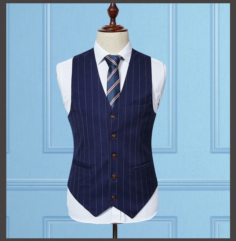 スリーピーススーツ チェック柄 3点セット ビジネススーツ ベスト ブレザー フォーマル パンツ 就職 結婚式 [M-4XL]選択可 紺