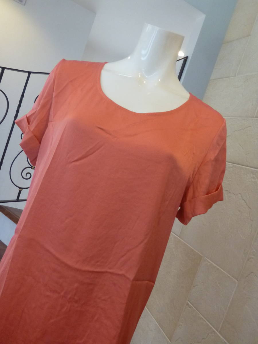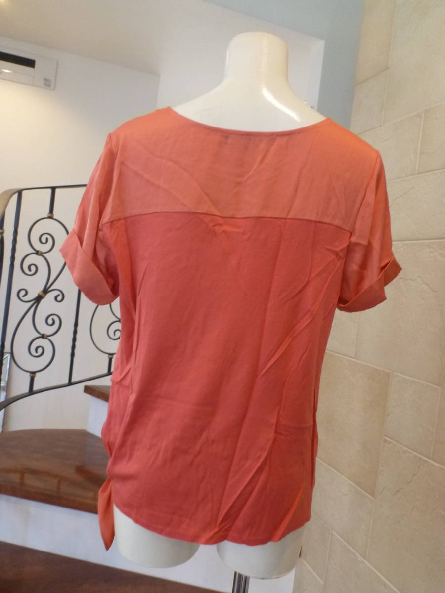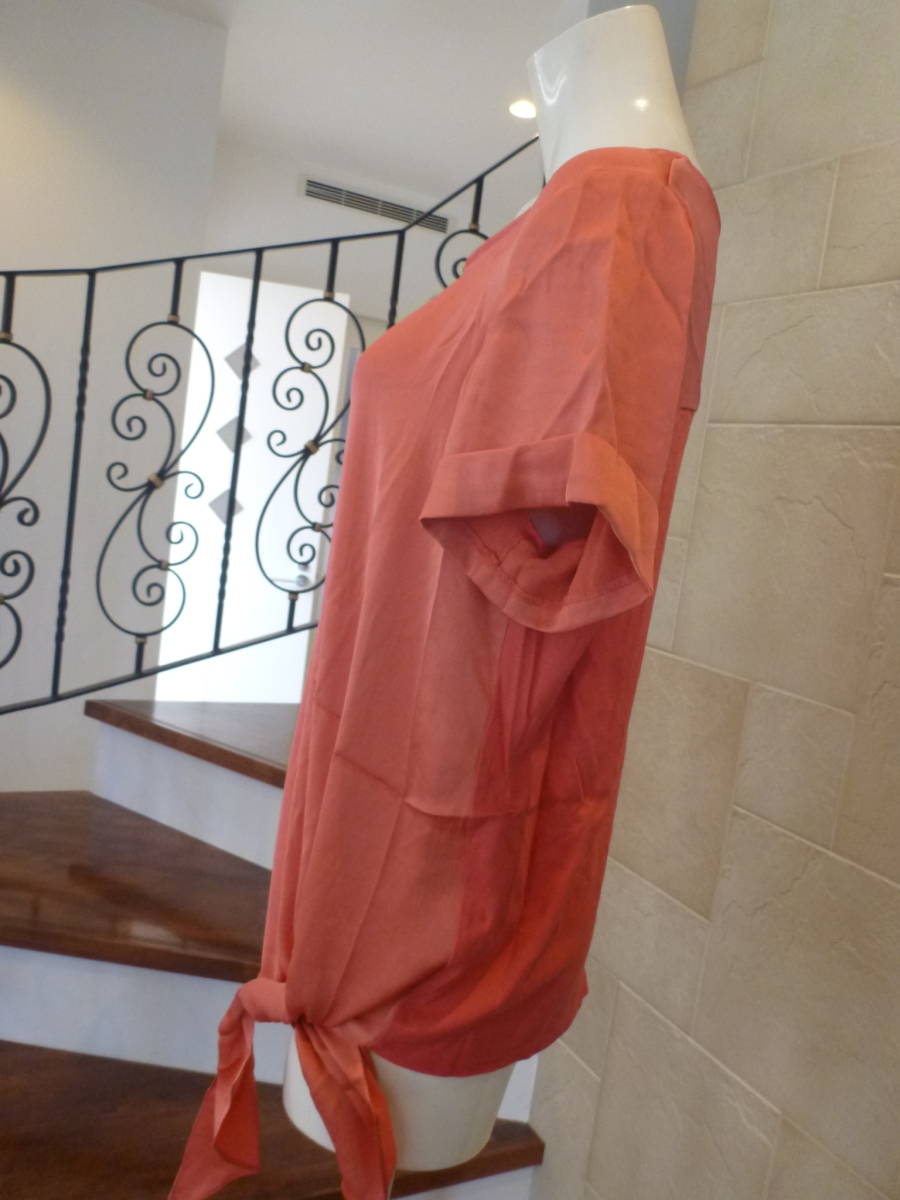 美品Rhythm of Life UNITED ARROWS (リズムオブライフユナイテッドアローズ★日本製 オレンジ系 リボン サテン使い カットソー L相当