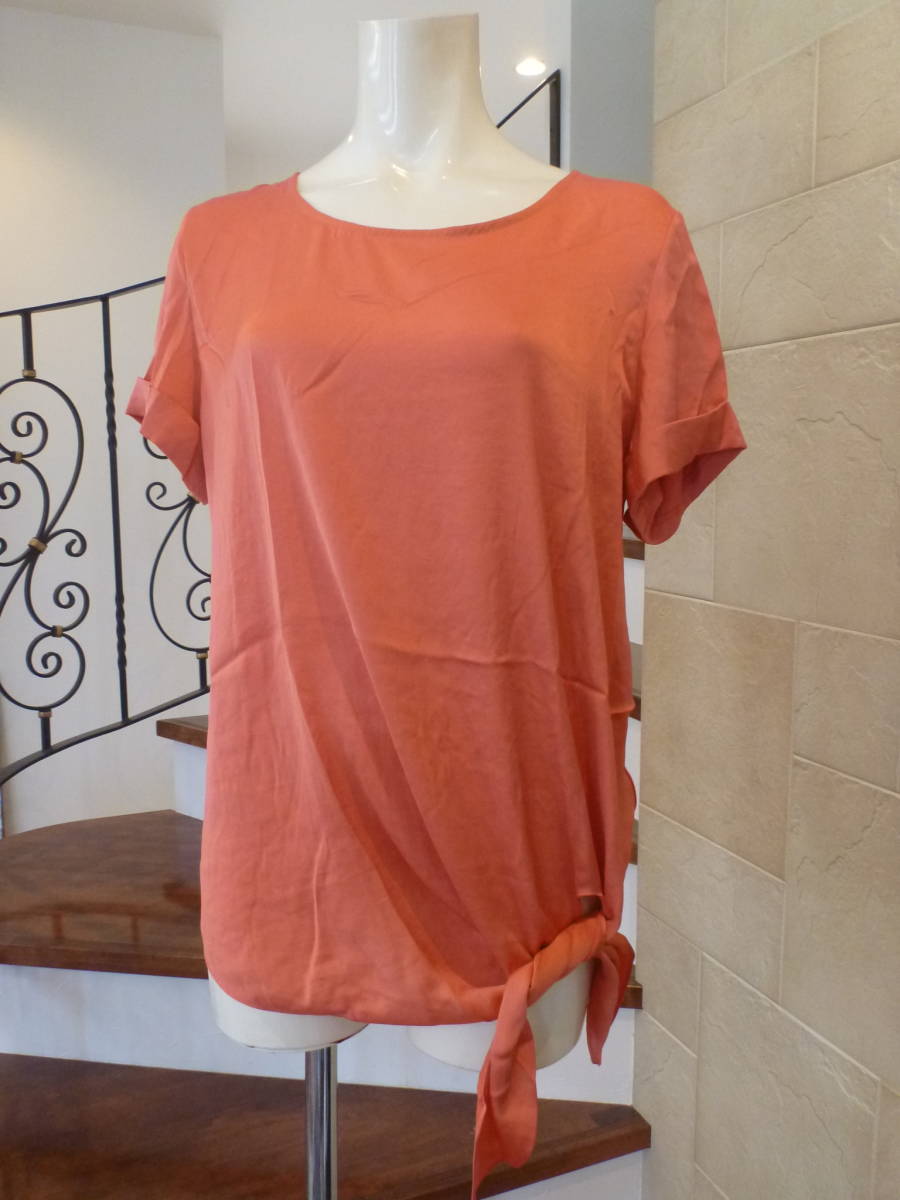◆日本製 オレンジ系 リボン サテン使い カットソー