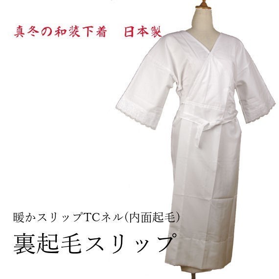 裏起毛着物スリップ 暖かスリップ TCネル (裏起毛) レース付 真冬の和装下着