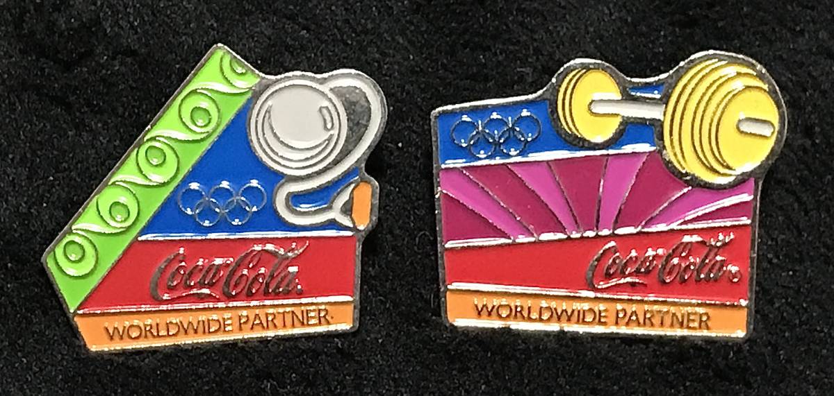 「ピン・オブ・ザ・デー」とは、リレハンメル1994大会で初めて導入されたプログラムです。大会期間中毎日、コカ・コーラ社が異なるデザインのピンバッジを配布。それらをすべて集めてパズルのように組み合わせると、「コカ・コーラ」ボトルの形になる、というものです。