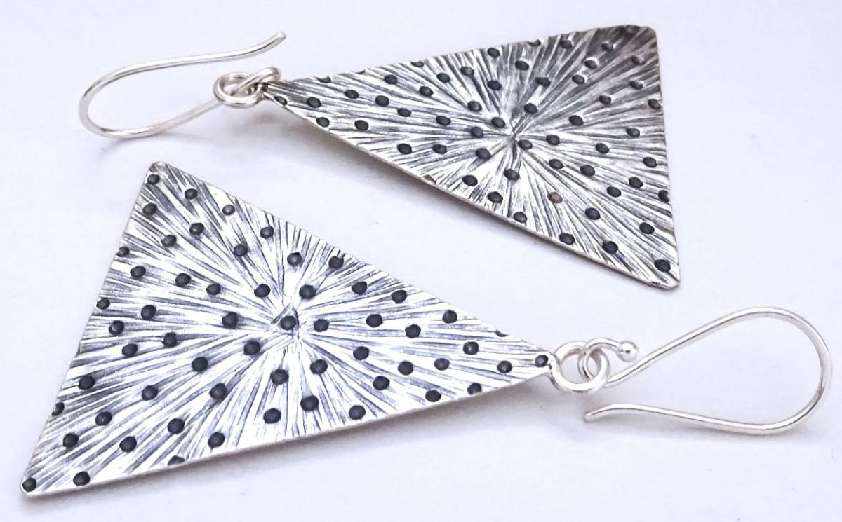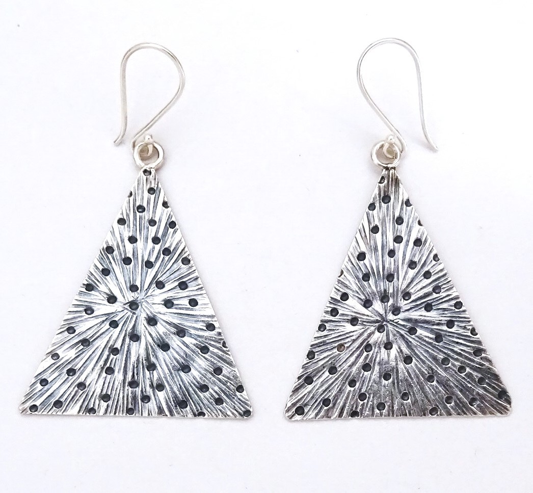 | ◆カレンシルバー ピアス・三角・水玉・刻印◆ロングピアス◆カレン族・karen silver【22tp01】 |
