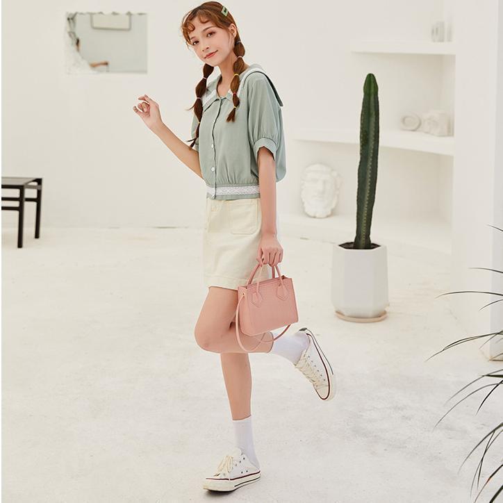 ストラップを外してミニトートバッグとしても使えるため、荷物が少ない方やちょっとしたお出かけ、スーパーなどのワンマイルコーデにもぴったりです。 さらに、どんなコーデにも合う形状なので、基本スタイルにマッチします。