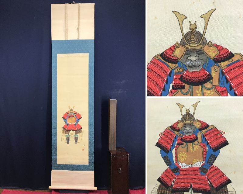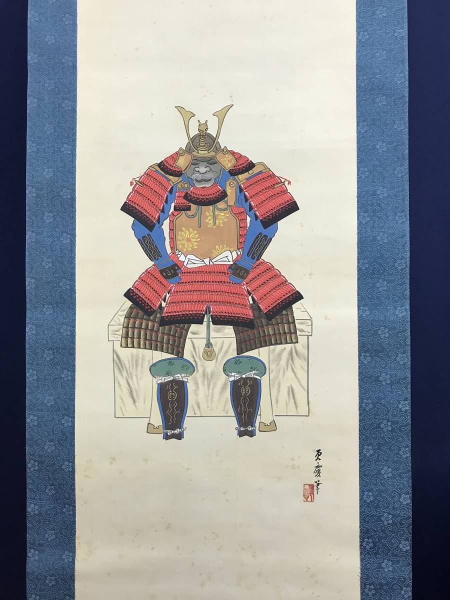 真作/更慶/鎧/甲冑/具足/武具/よろい/かっちゅう/ぐそく/ぶぐ/ヨロイ図//掛軸☆宝船☆AD-850