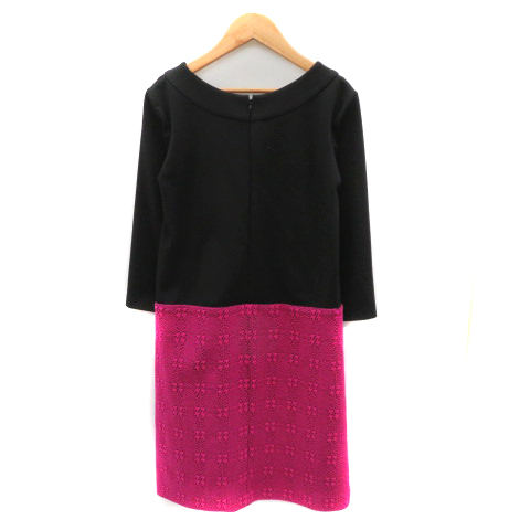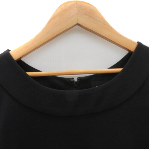 タルボット TALBOTS ワンピース ミニ丈 七分袖 ラウンドネック 切替 無地 S 黒 ブラック /YK23 レディース
