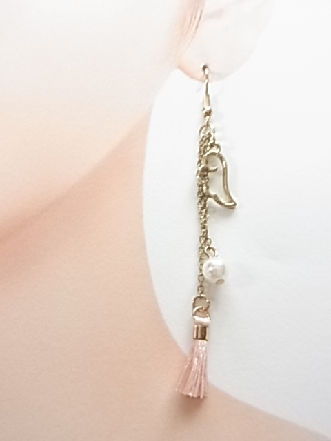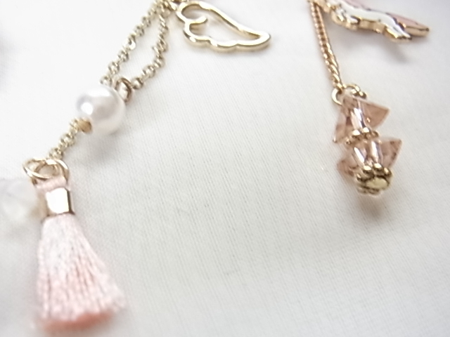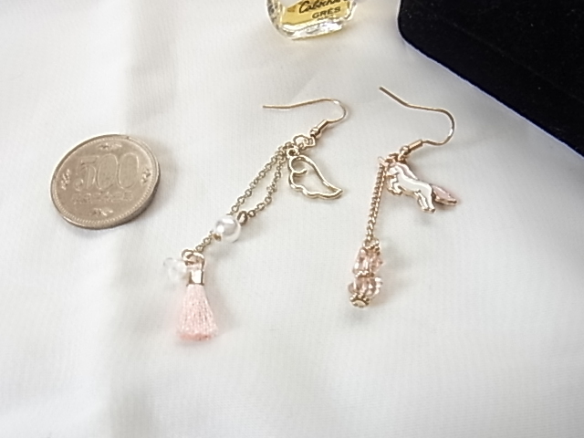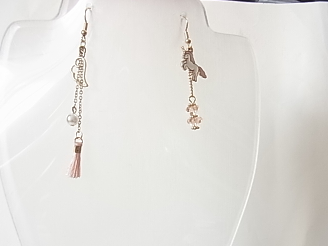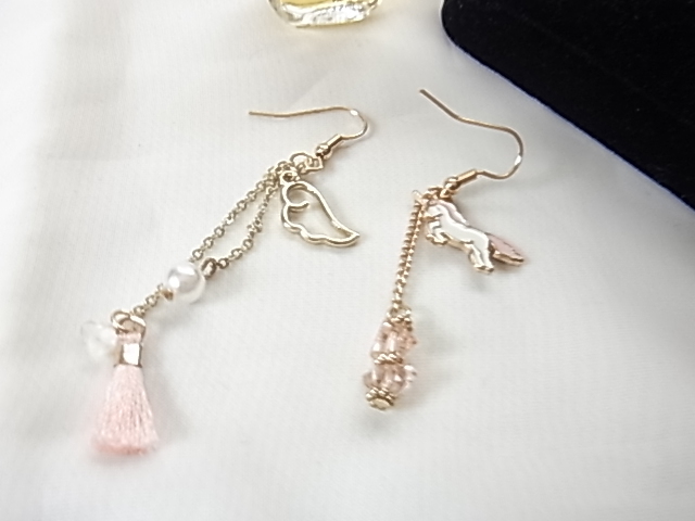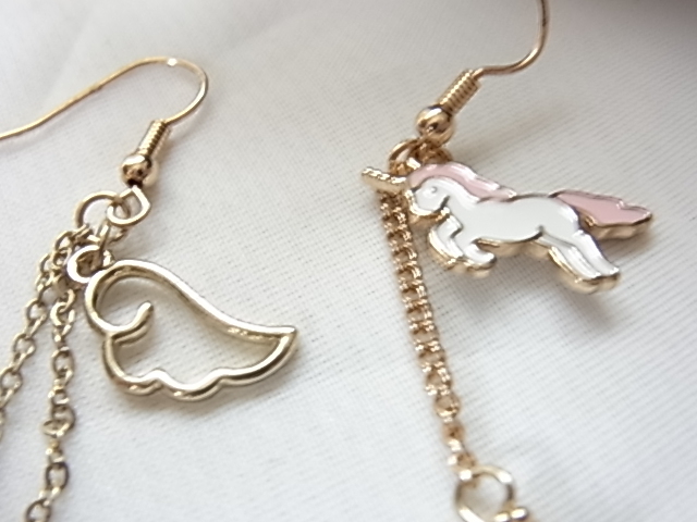 左右で違うデザイン 可愛いペガサスに羽のモチーフ 少し長めの耳元で揺れて可愛らしい印象 ベビーパール調のビーズ付き ピアス★