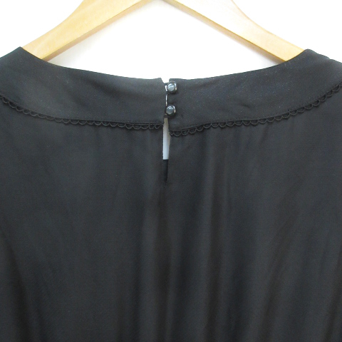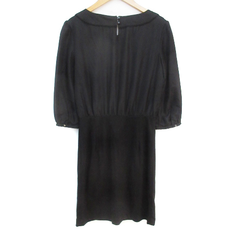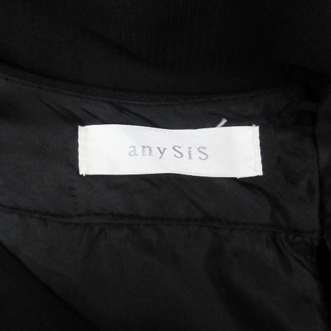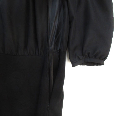 エニィスィス エニシス anySiS ワンピース ひざ丈 七分袖 ラウンドネック 切替 レース 総柄 2 黒 ブラック /FF14 レディース