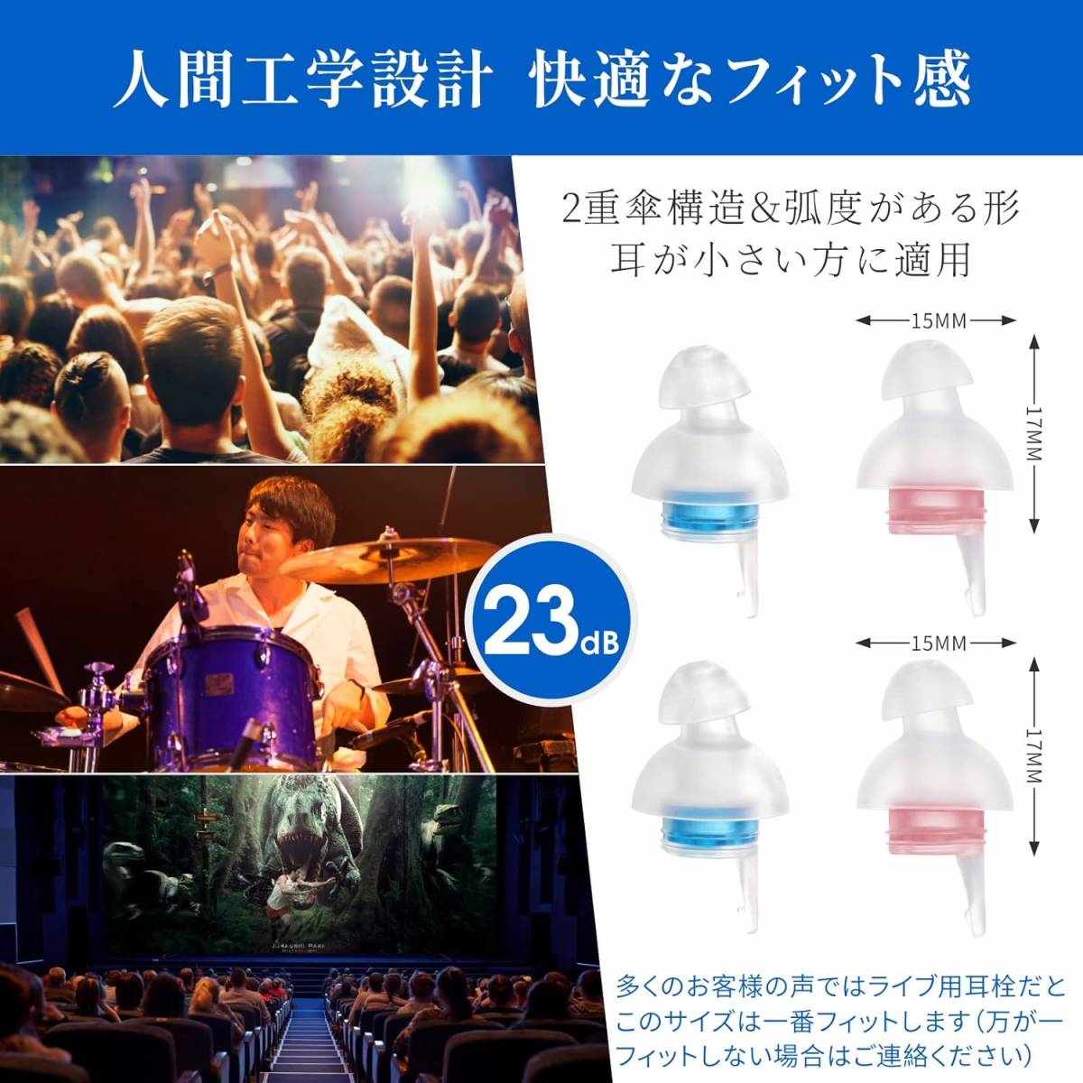 聴覚保護耳栓 MUSIC EARPLUGS イヤープロテクター コンサート 花火大会 シリコン 23dBフィルター ブルーとピンク 聴覚過敏の緩和におすすめ