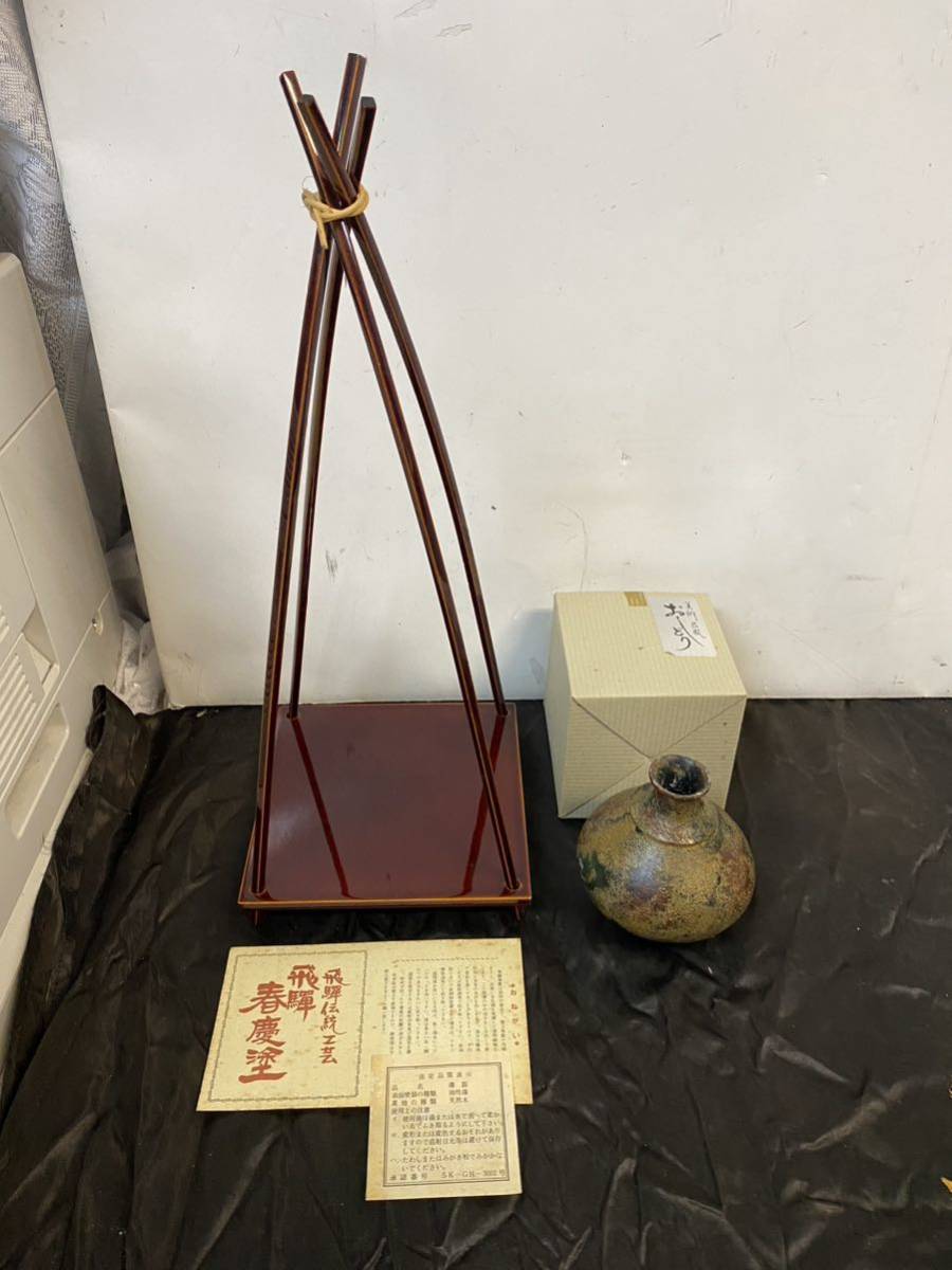 飛騨春慶塗 花台 美術花瓶 おしどり セット 織部
