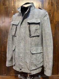 L054 メンズ ジャケット FRENCH CONNECTION フレンチコネクション ミリタリー ブルゾン グレー チェック 柄 薄手 小さいサイズ / S (6)