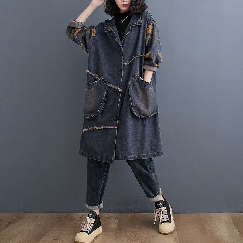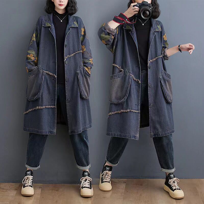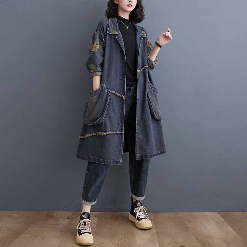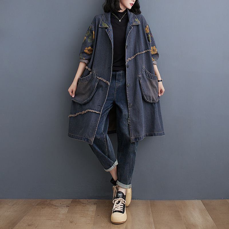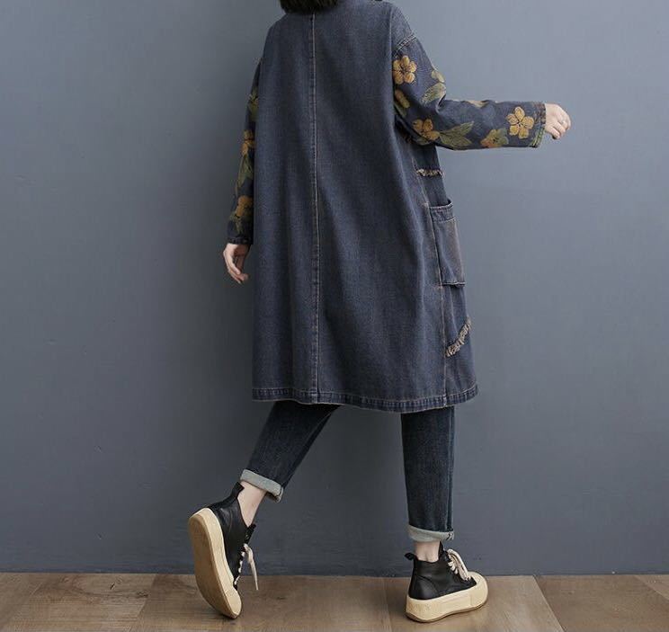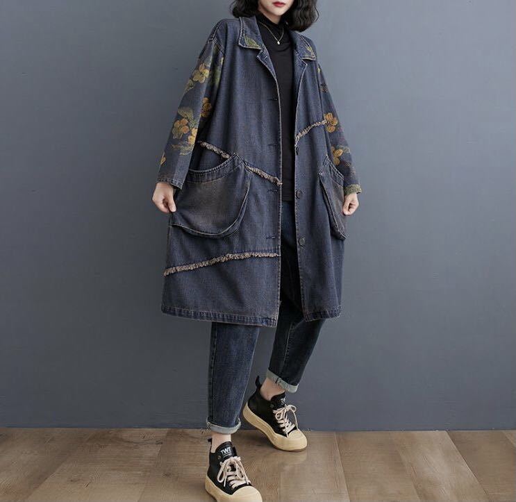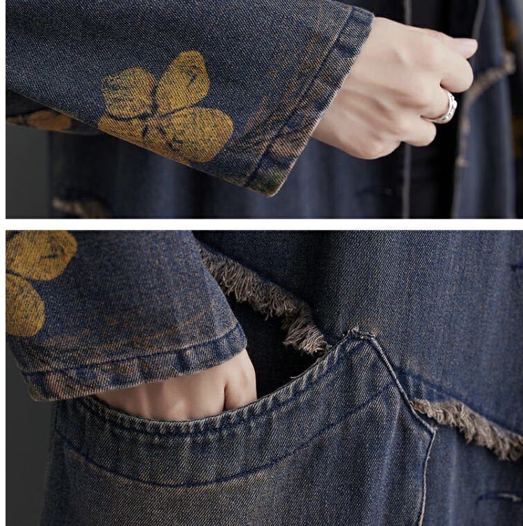 デニムコート デニムアウター レディース デニム おしゃれ ロングアウター 羽織もの 長袖 アウター コート 前あき 羽織 羽織り はおり カジュアル 春秋アウター 秋 可愛い LCEA054(M-2XL)