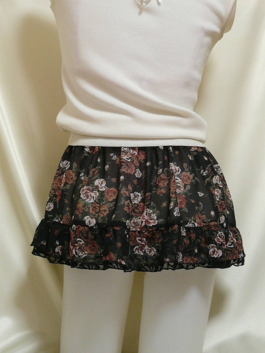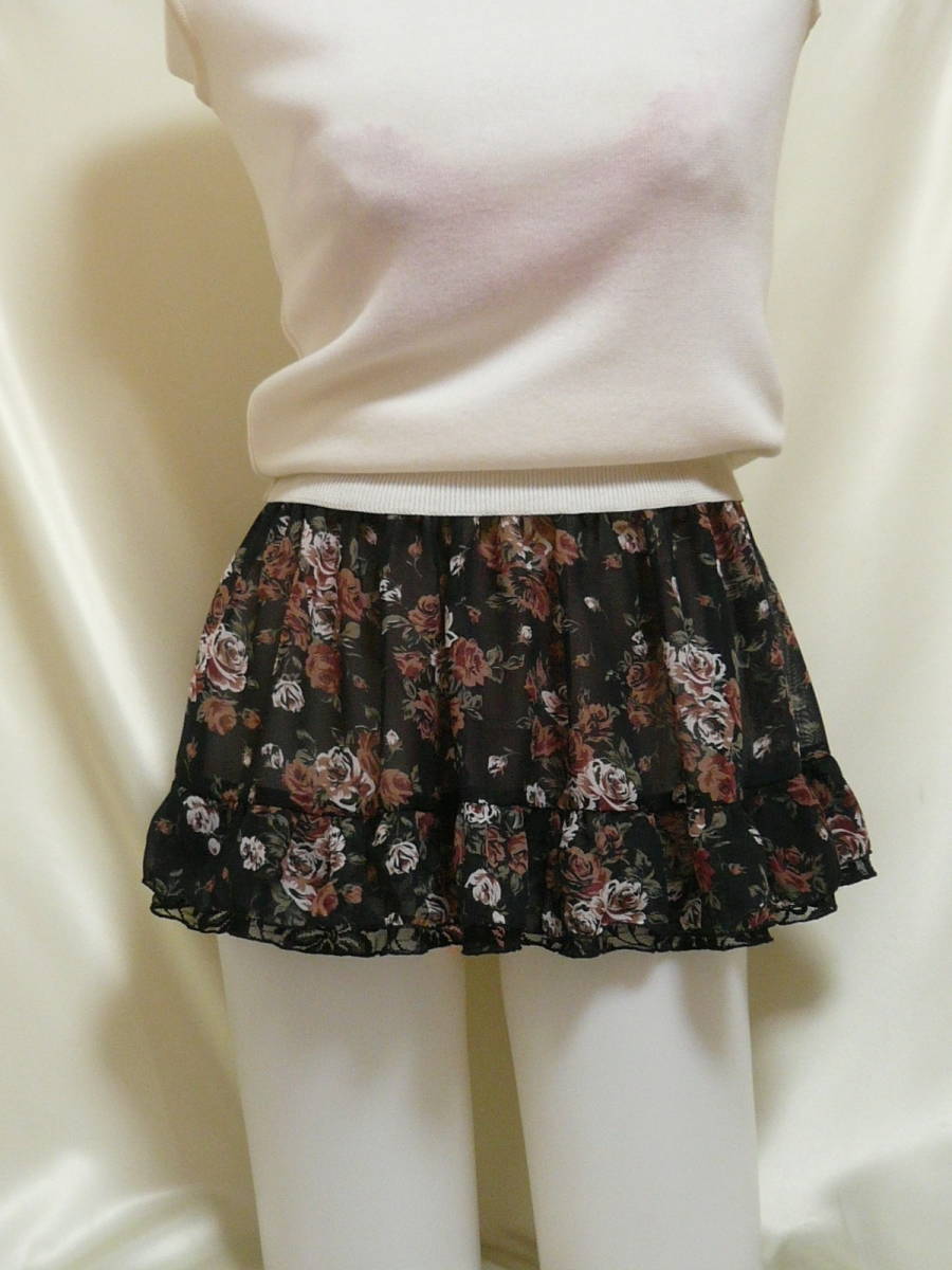 ♪♪黒地に白&茶色のばら柄の超マイクロミニ☆華やかな裾フリル^^♪♪