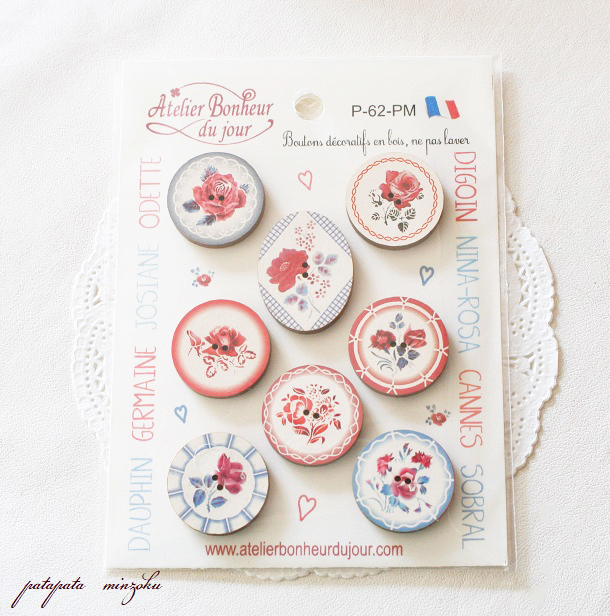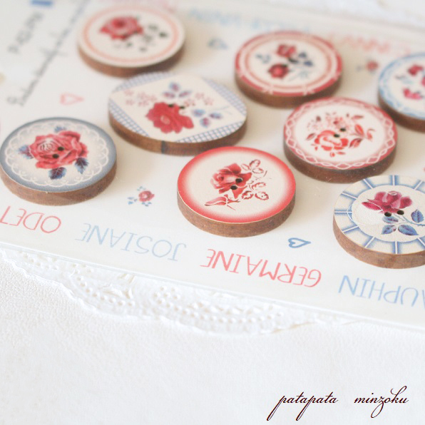 木製ボタンセット バラ 小型 ボタン コレクション フランス 製 木製ボタン アトリエ ボヌール ドゥ ジュール 薔薇 ローズ 雑貨