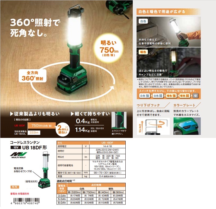 HiKOKI(旧日立工機)製のコードレスランタンのUB18DFです。