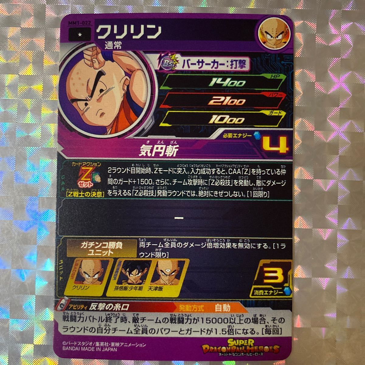 MM1弾コモン/ クリリン(通常)/ MM1-022/ 技:気円斬/ スーパードラゴンボールヒーローズ/ レアリティ:☆/ BANDAI
