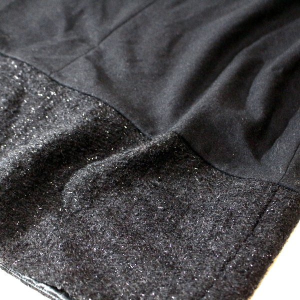 ラメの入った軽めのブークレ生地が切り替えになったフラノウールの綺麗めワンピースです。