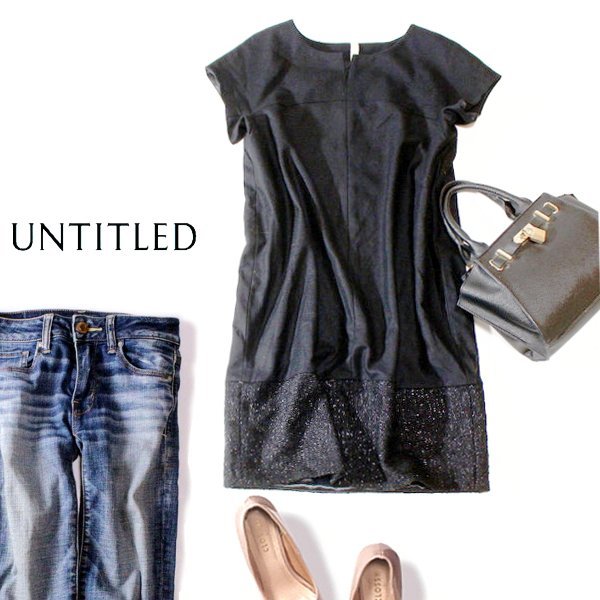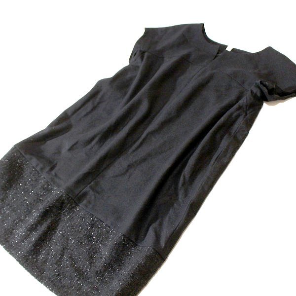 ☆☆ 美品 UNTITLED アンタイトル ☆☆ ラメ・ブークレ切替え 綺麗め フラノウール ワンピース 2号 M 秋 冬 23B12