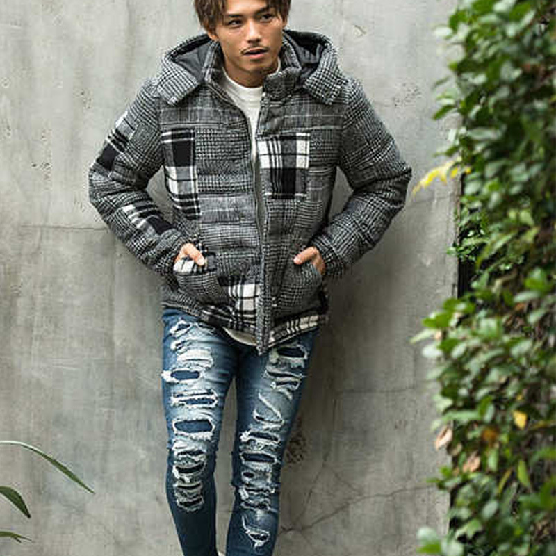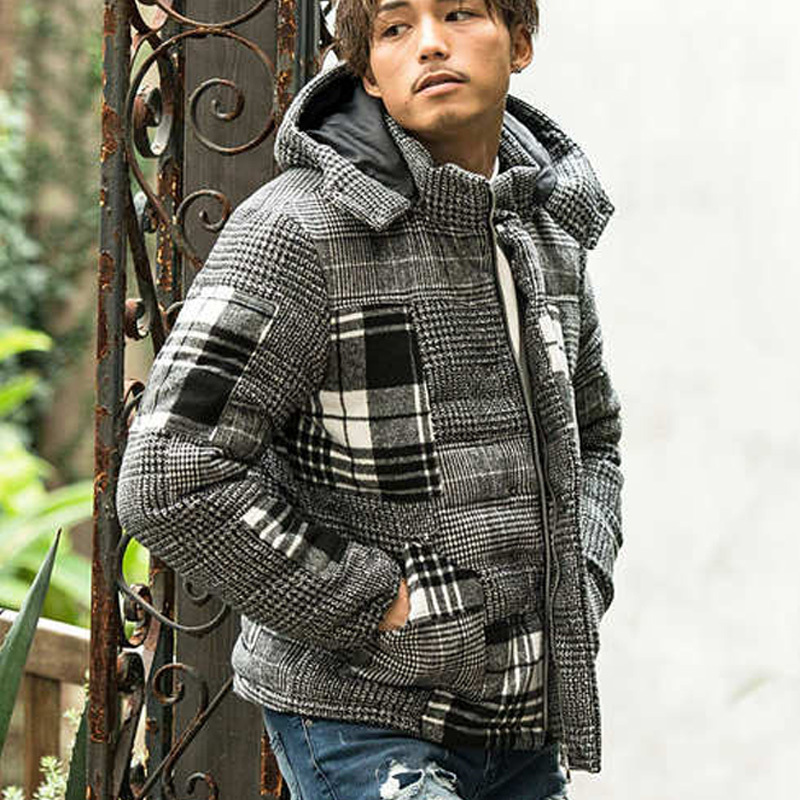 ツイード パッチワーク 中綿 ジャケット ブルゾン TWEED x CHECK PATCHWORK BATTING BLOUSON