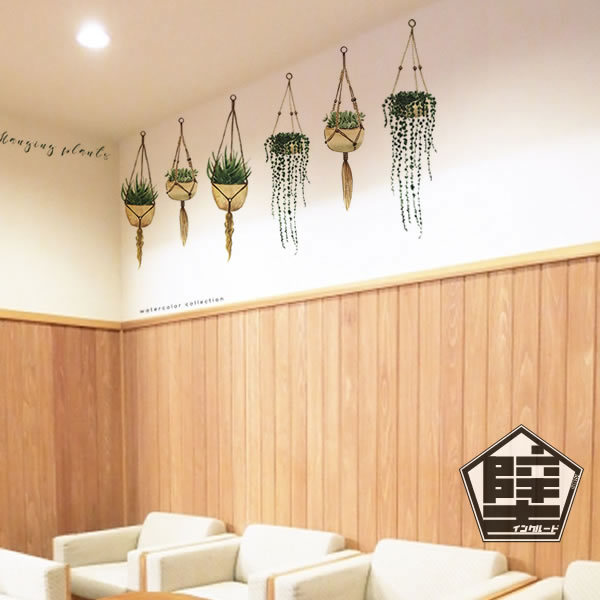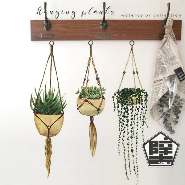 壁ステッカー ウォールステッカー ハンギング グリーン プランツ リーフ 吊り植物 多肉植物 アロエ サンスベリア セダム