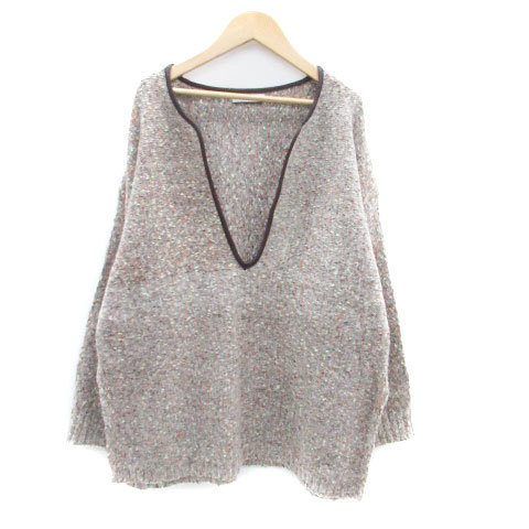 ジーナシス JEANASIS ニット セーター スリットネック 長袖 無地 オーバーサイズ F マルチカラー グレー /HO44 レディース