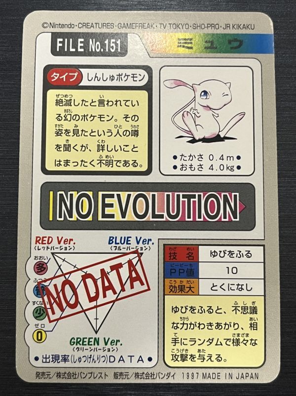 ◆即決◆ FILE No.151 ミュウ 4弾 レリーフ ◆ ポケモンカードゲーム カードダス バンダイ ◆ 状態ランク【A-】◆