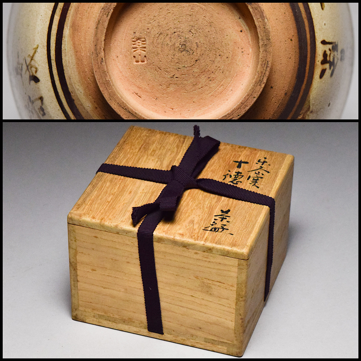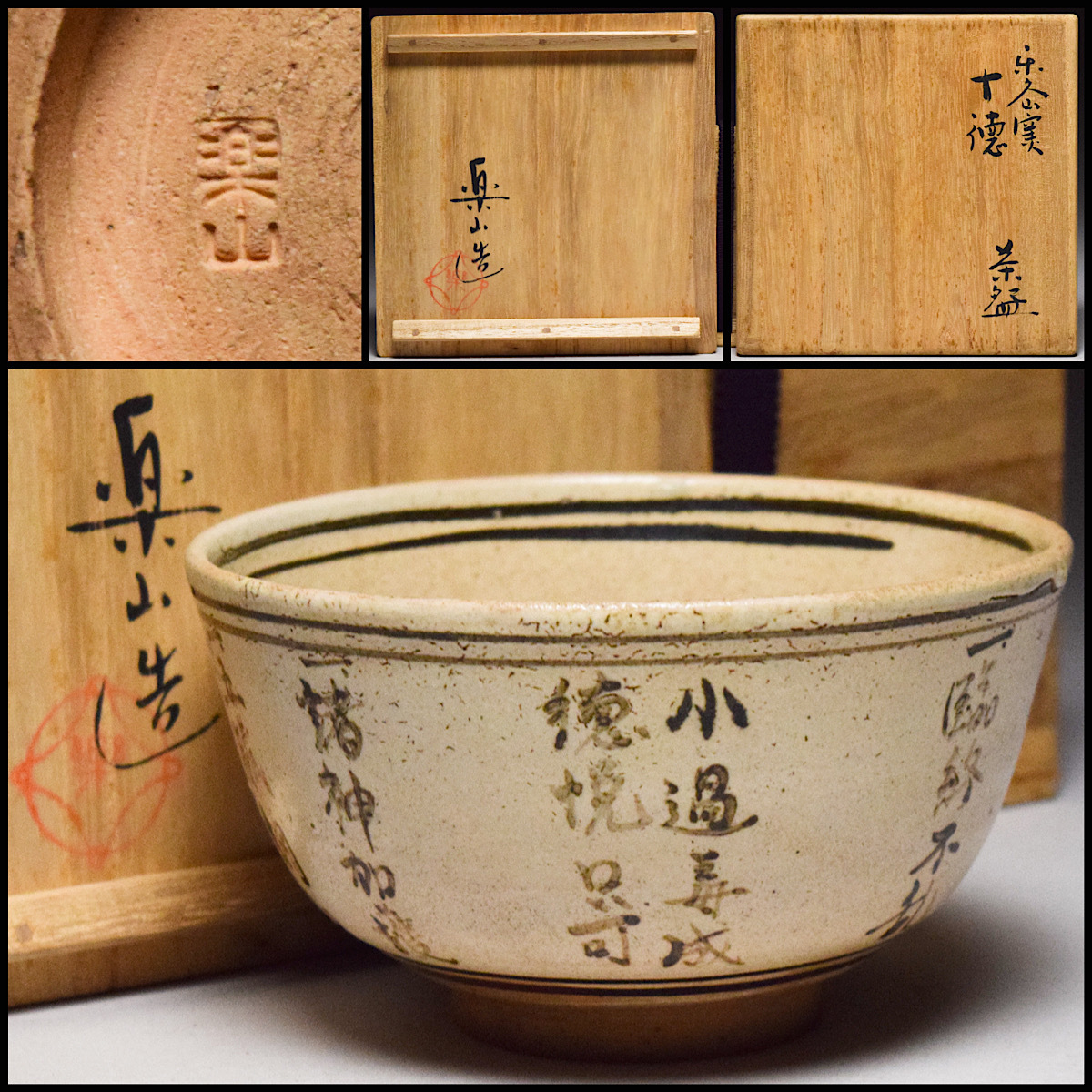 【八八八】楽山窯 清水楽山 茶之十徳 茶碗 ◆共箱 茶道具 抹茶碗 鉄釉 楽久山窯 【e-092】