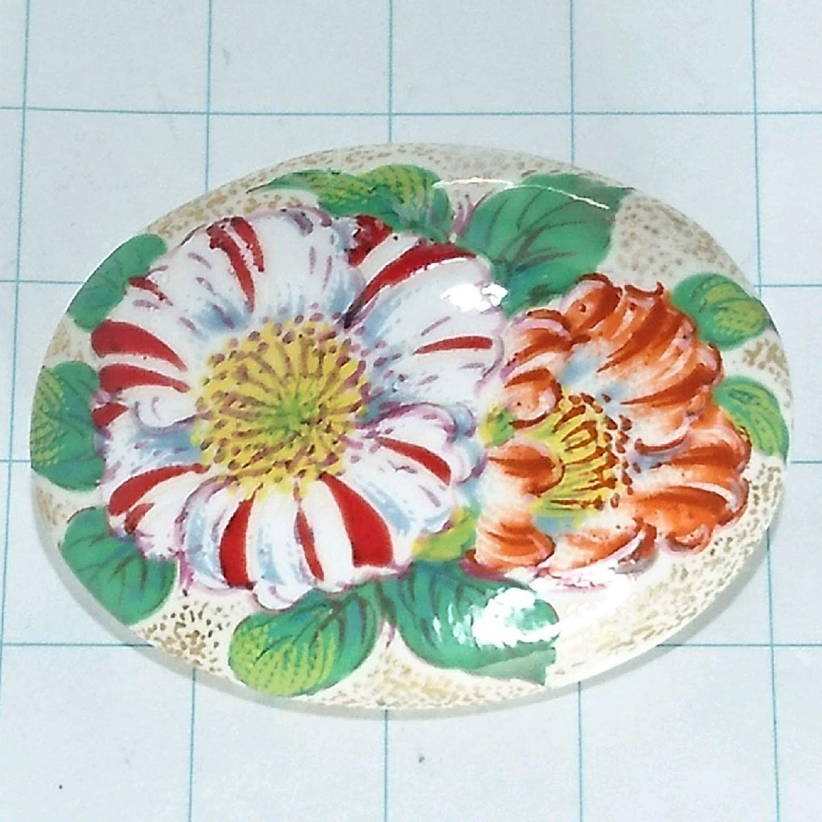 送料無料)ビンテージ☆陶器 花柄☆アンティーク ブローチ A21407