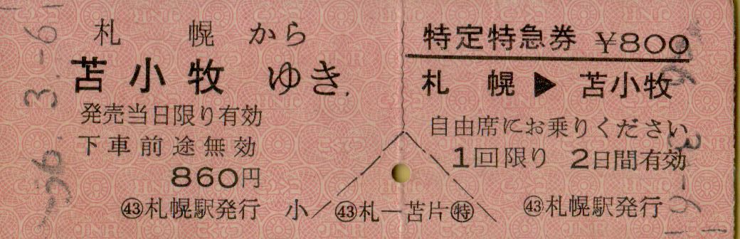 ■■ 国鉄 札幌 【 乗車券 特定特急券 】