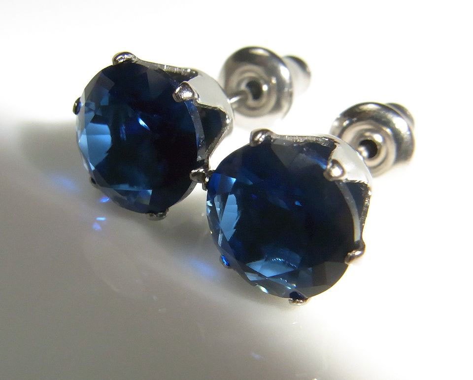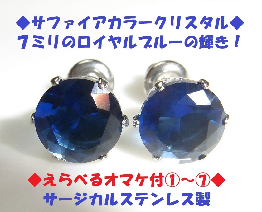 ◆2ct 大粒 7ミリ サファイア カラー クリスタル ピアス ステンレス製◆ | |||