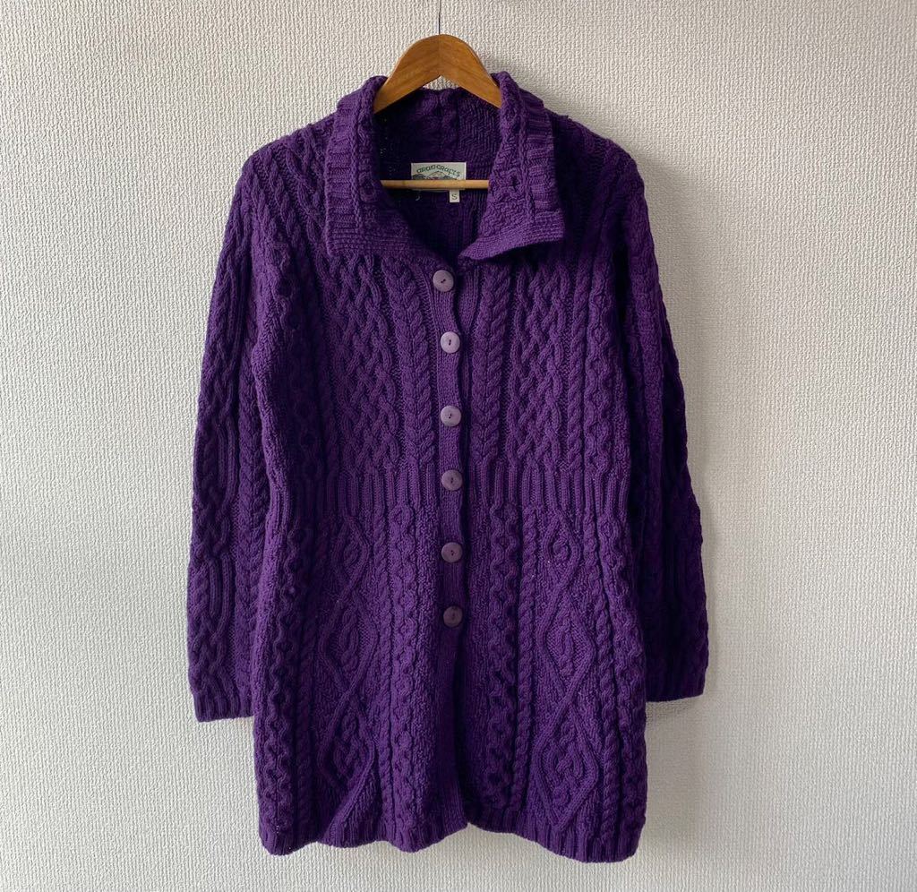 アイルランド arancrafts アラン ニット カーディガン S フィッシャーマン ロング アランクラフト