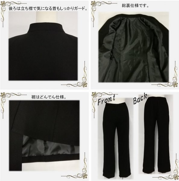 年齢を重ねるごとに体型が変わり、背中、腰、お腹、二の腕、太もも等がふくよかになる為、若いとき購入したブラックフォーマルが窮屈に思われるという方も見えると思います。こちらのブラックは、長時間着用しても楽で、体型が少々変わっても安心です。