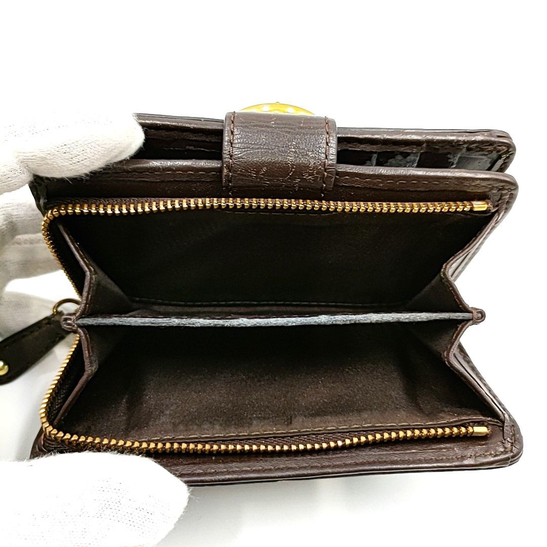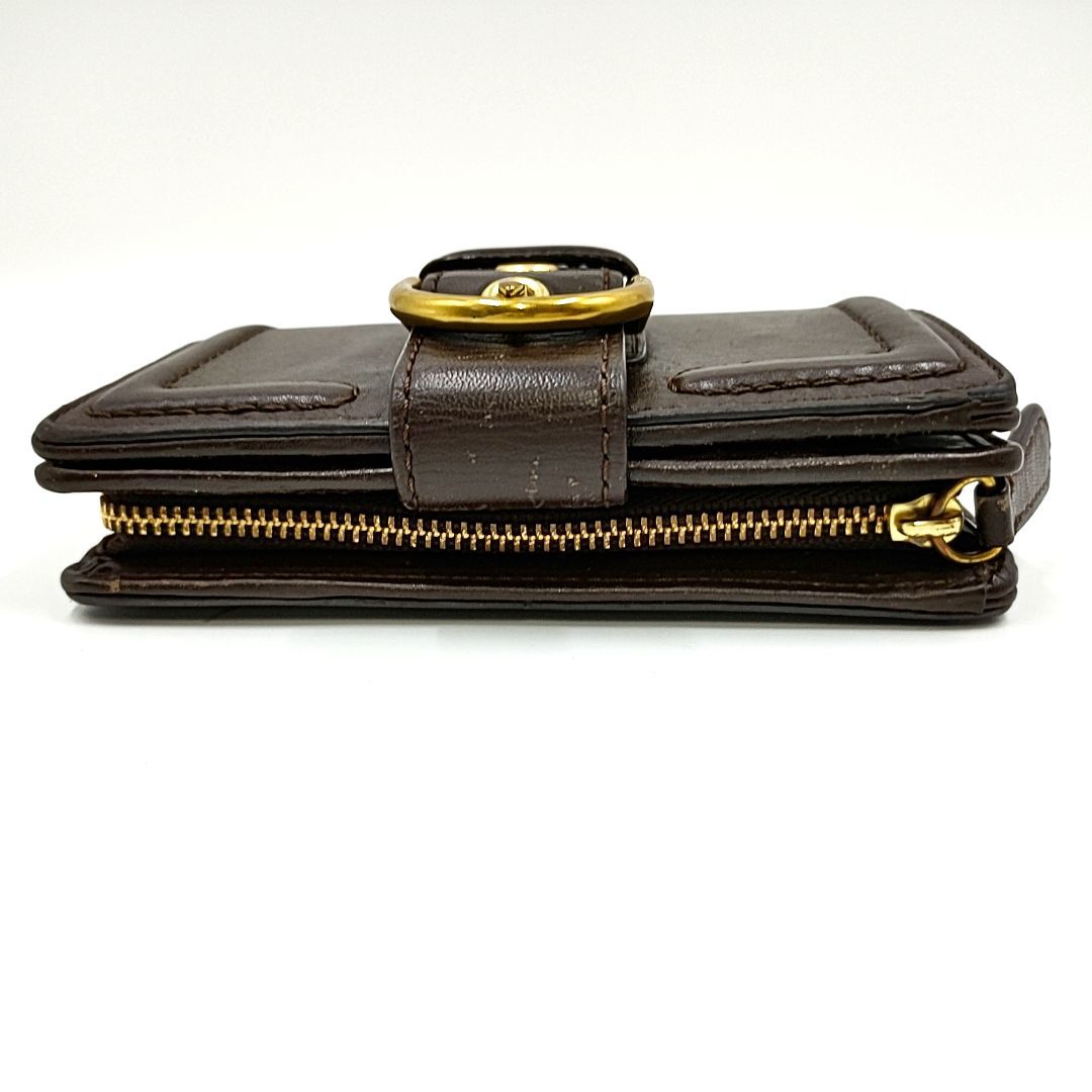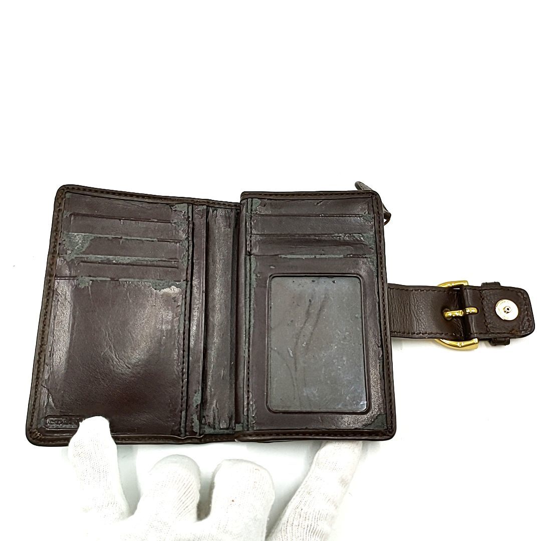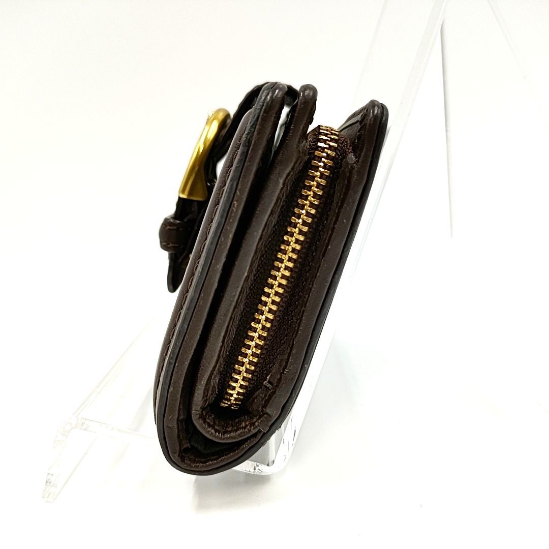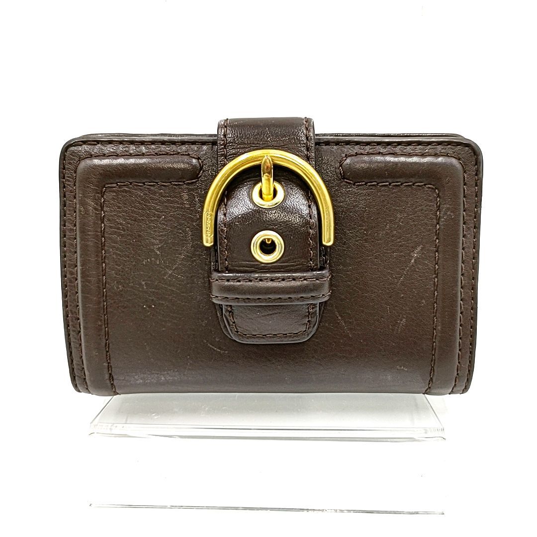 【ジャンク】COACH コーチ バックルデザイン L字ファスナー 二つ折り財布 ブラウン W8.5 H13.5