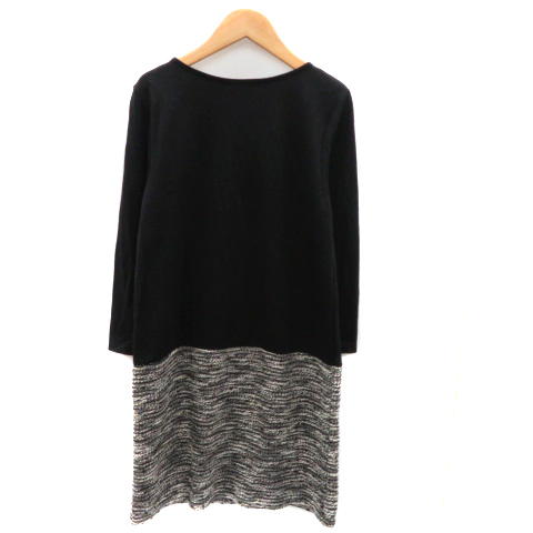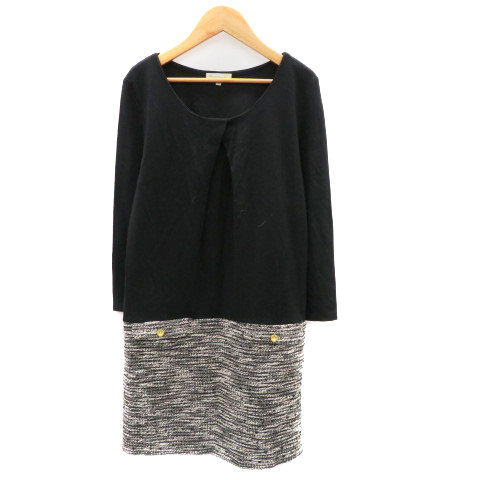 ロペピクニック ROPE Picnic ワンピース ひざ丈 七分袖 ラウンドネック 切替 無地 38 黒 ブラック /YK20 レディース