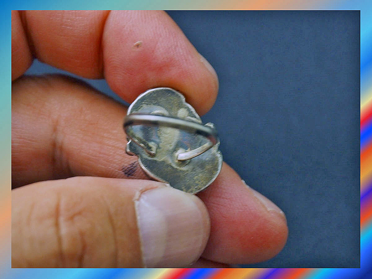 ※インディアンジュエリーはハンドメイド作品ですので、工場製品のような仕上がりではなく、手作りであるが故の歪みやハンマー等の打痕が残って居る事もあります。画像でご確認の上ご入札ください。