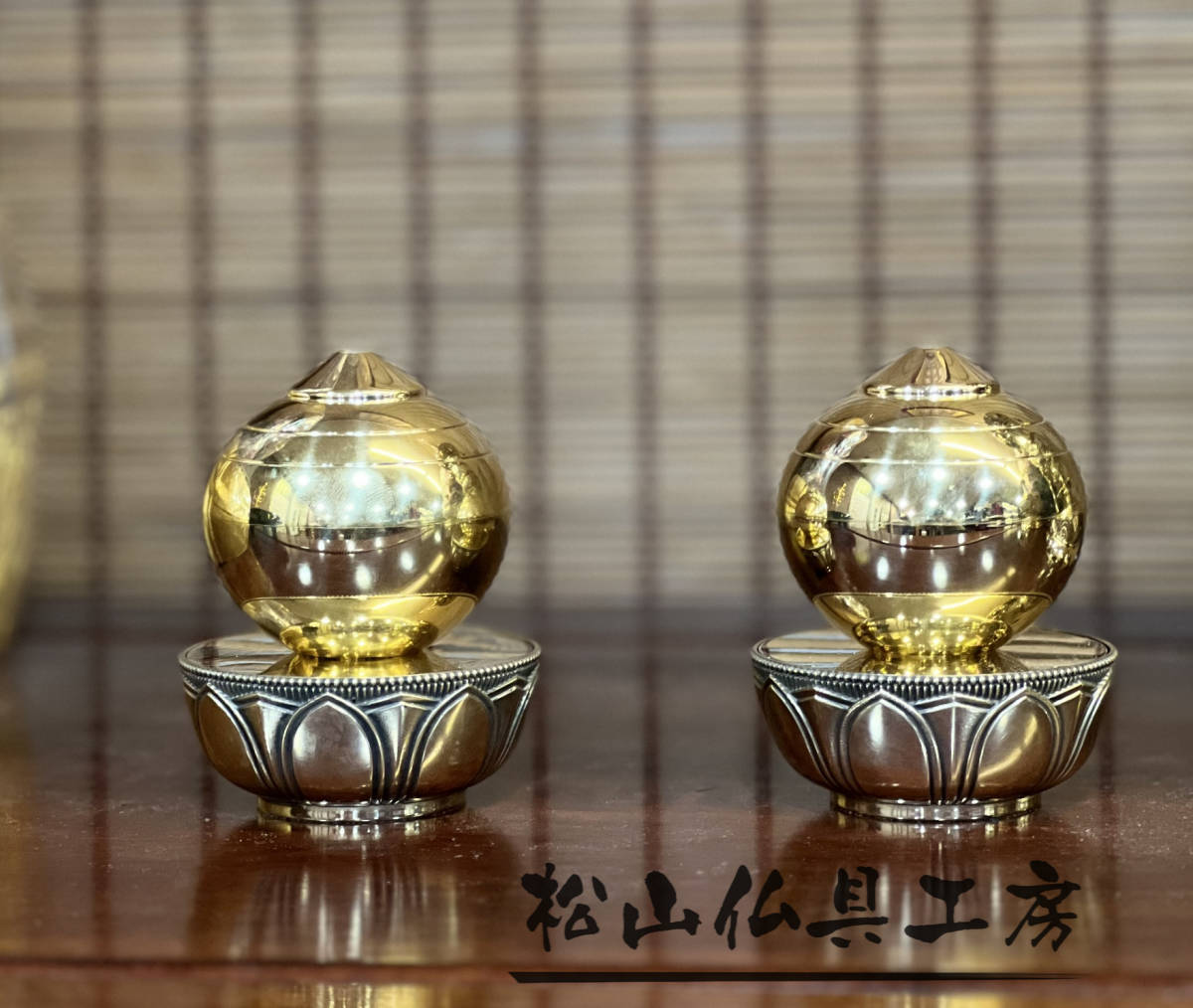 「松山仏具工房出品」密教法具 摩尼灯 一対 真鍮製