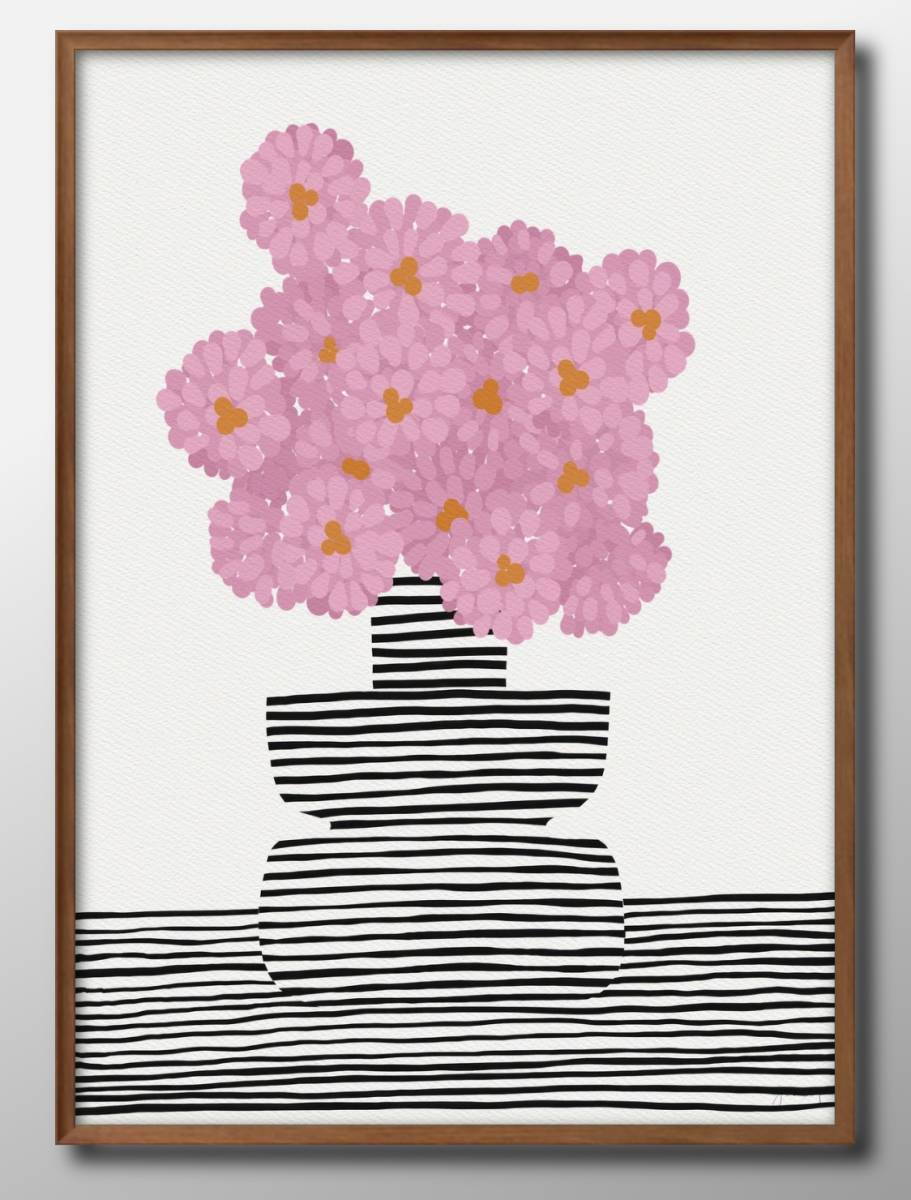14070■送料無料!!アートポスター 絵画 A3サイズ『ダリア フラワー 花』イラスト 北欧 マット紙