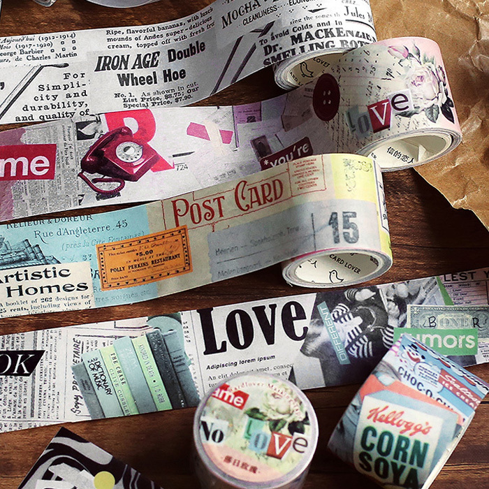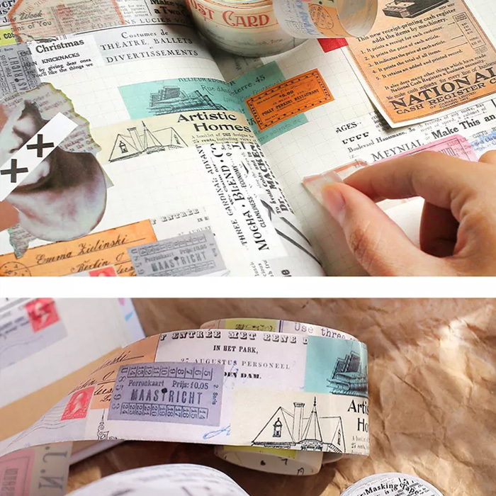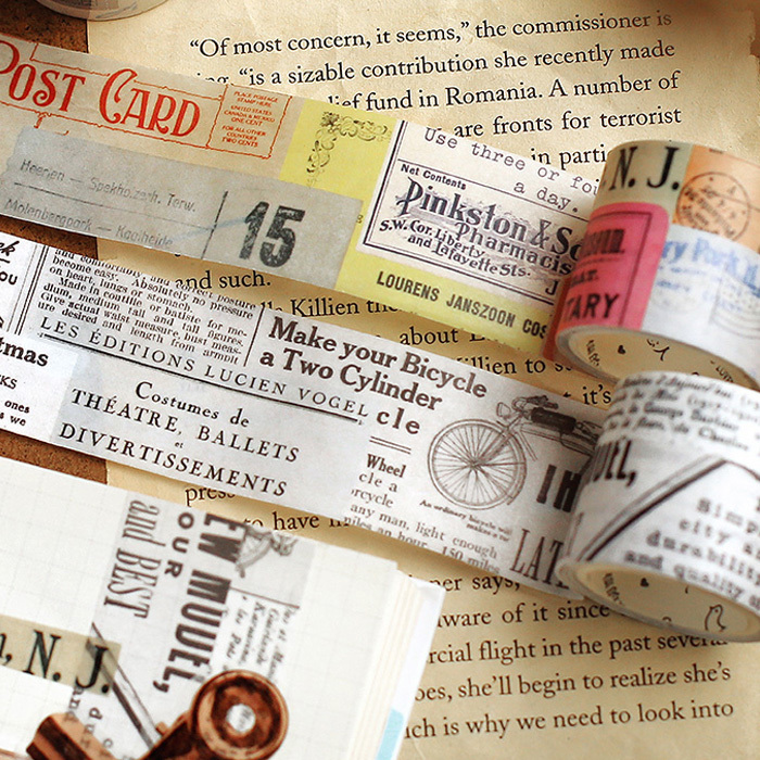 マスキングテープ ビンテージ アンティーク イラスト モノクロ レトロ スクラップブッキング マステ 0029-4