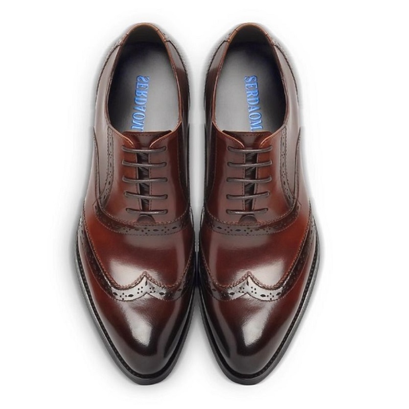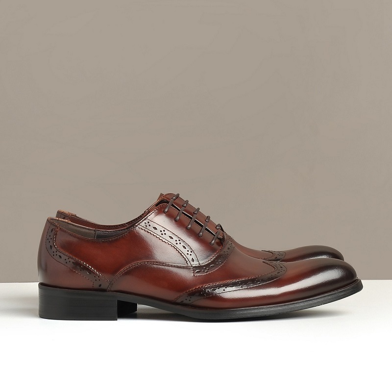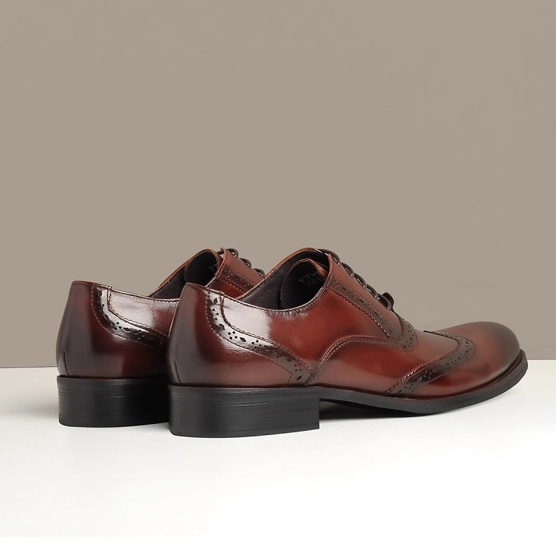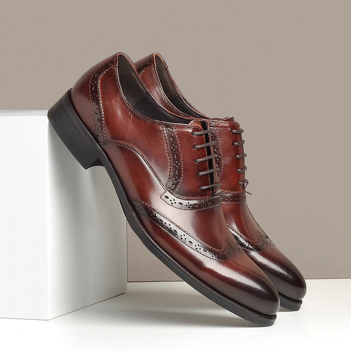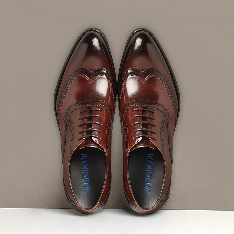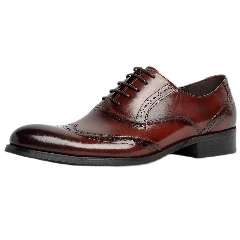 定番!! 新品 メンズビジネスシューズ 天然皮革ウィングチップ ダークブラウン SE25cm