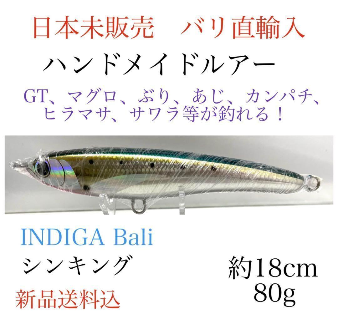 日本未販売 バリ直輸入ハンドメイドルアー 【メーカーINDIGA Bali】 GT、マグロ、ブリ、アジ、カンパチ、ヒラマサ、サワラなどに最適!! 注意→ハンドメイドなので若干の誤差あります。 【商品詳細】 ペンシルベイト、スティックベイト、トップウォーター、キャスティング シンキング 長さ:約18cm 重さ:80g INDIGA S.80g -500