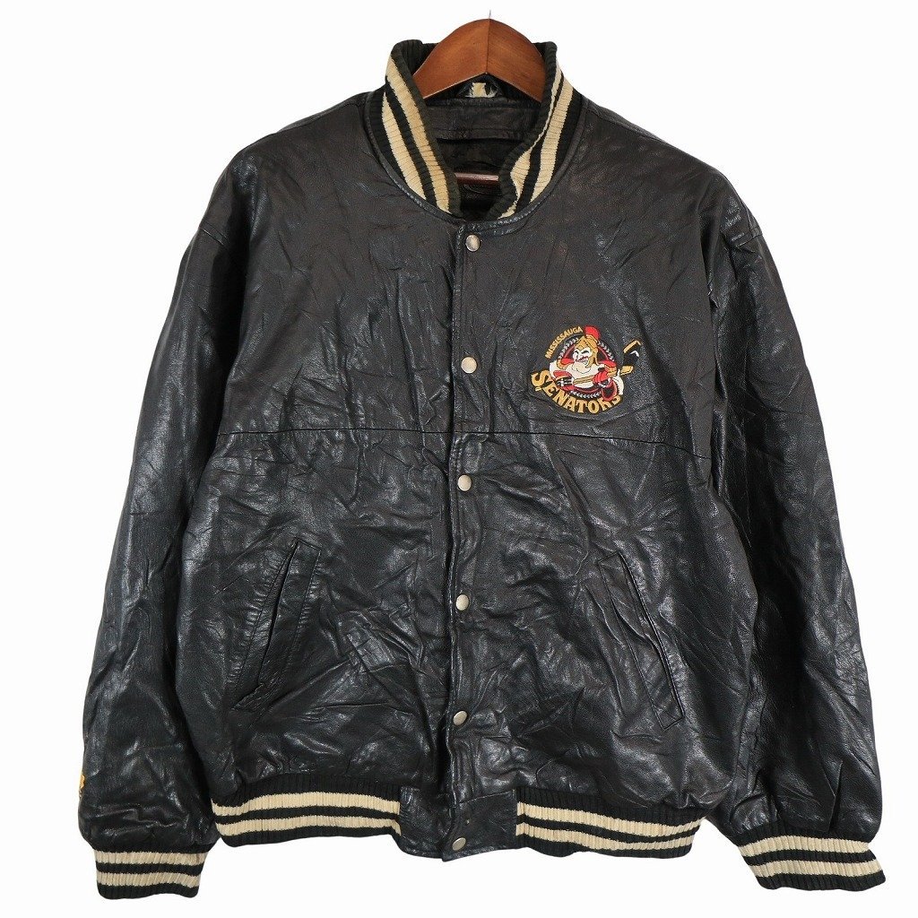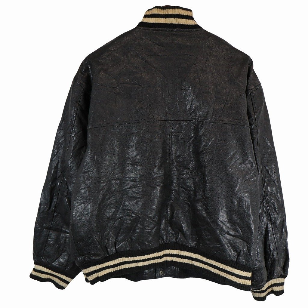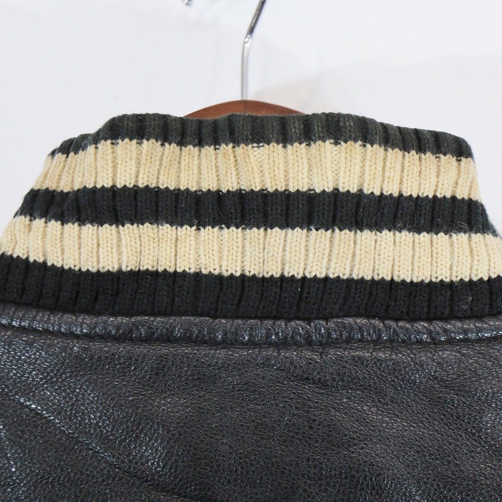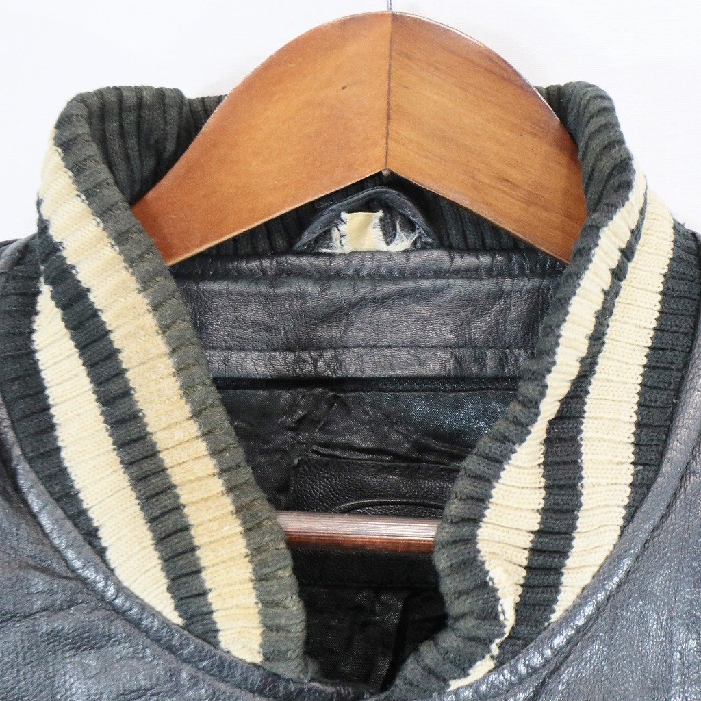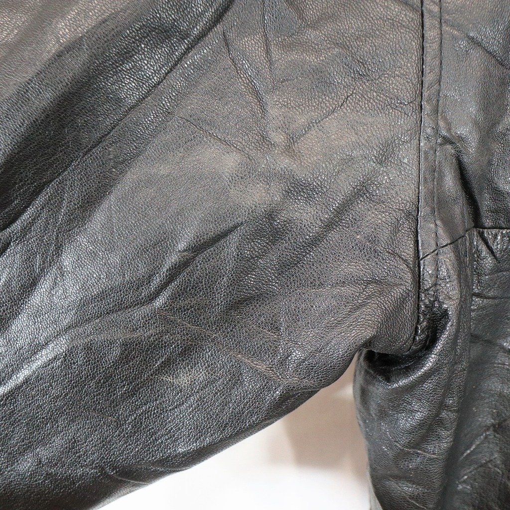 [商品管理番号] O8778 [表記サイズ] -- 表記無し(≒ Lサイズ相当 ) [実寸サイズ] 肩幅:約56cm 着丈:約65cm 身幅:約63cm 袖丈:約63cm [素材] 表地 : 本革 [色] ブラック [仕様] カジュアル [状態] 汚れ:襟、首元、袖先、背中、裾 | |||