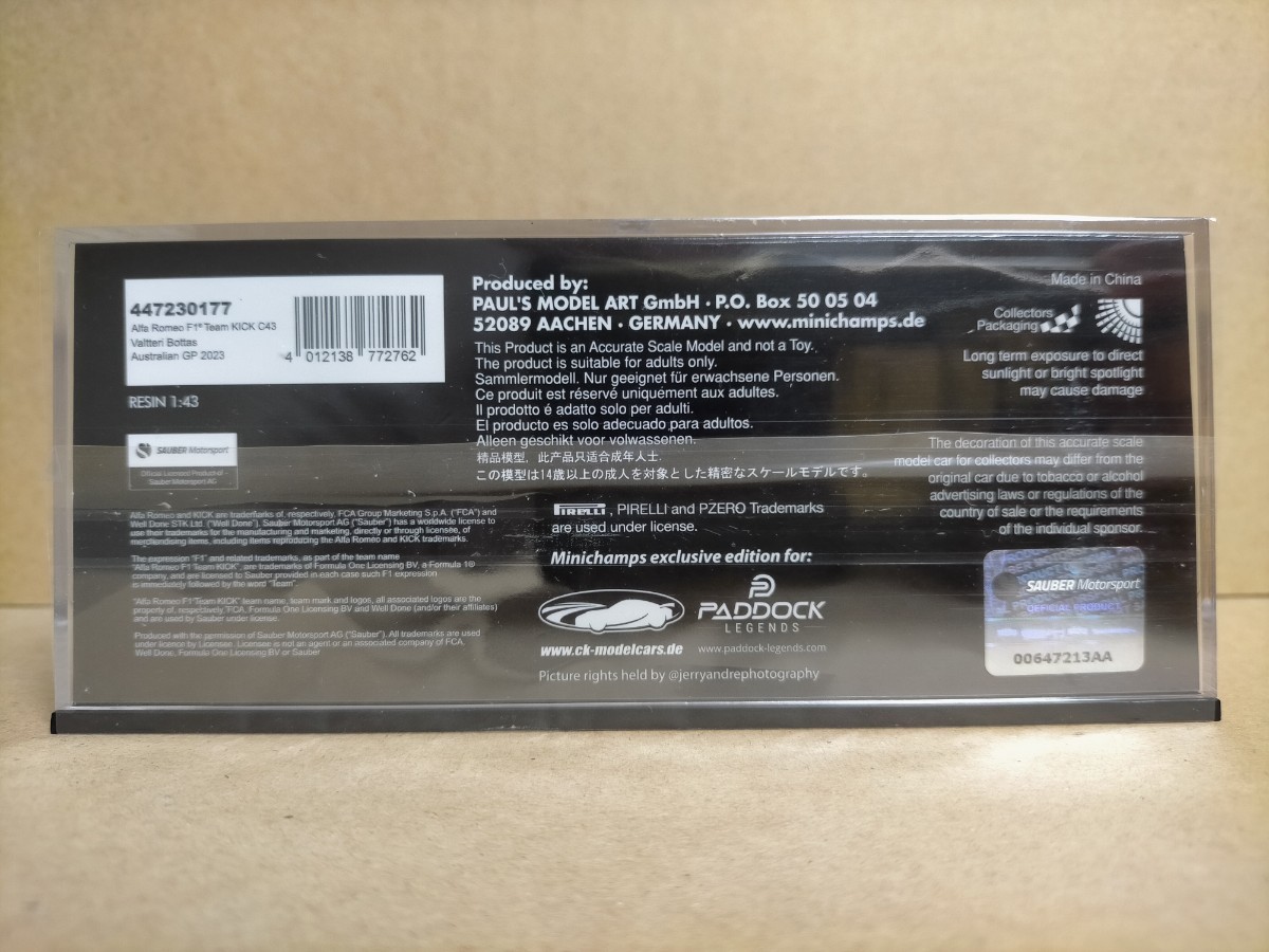 *説明文を最後までお読みいただき、以下の内容をご了解のうえでご入札ください。 【商品説明】 海外別注品 PMA 1/43 アルファロメオ ザウバー フェラーリ F1 C43 V.ボッタス No.77 2023 オーストラリアGP 限定222台 フィルム付き新品未展示品 目立った傷み等はなく、状態は良好のようですが、見落とし等があるかも知れませんので、状態は画像にてご判断ください。 【発送方法】 ・定形外郵便(保障なし・ダンボール梱包) 500円 ・ゆうパック おてがる版 60サイズ お取り置き、同梱も可能です。 【お支払方法】 ・Yahoo!かんたん決済 【注意事項】 製造段階からの不具合、デカールの浮き欠け等の品質や塗装のムラ、ミラー等の個体差、箱、クリアケースの擦り傷等細いキズ、経年劣化等はご了承下さい。また近年ミニチャンプス製品につきましては輸送段階での僅かな振動や衝撃でもパーツが外れる等々が多々ございますが、このようなメーカーの製造過程、構造に起因するものにつきましても一切対応致しかねますので、これらご了承の上ご入札下さい。神経質な方の入札はご遠慮願います。評価の悪い方の入札はご遠慮いただく場合があるかもしれませんがご了承ください。ノークレームノーリターンでお願いします。 |