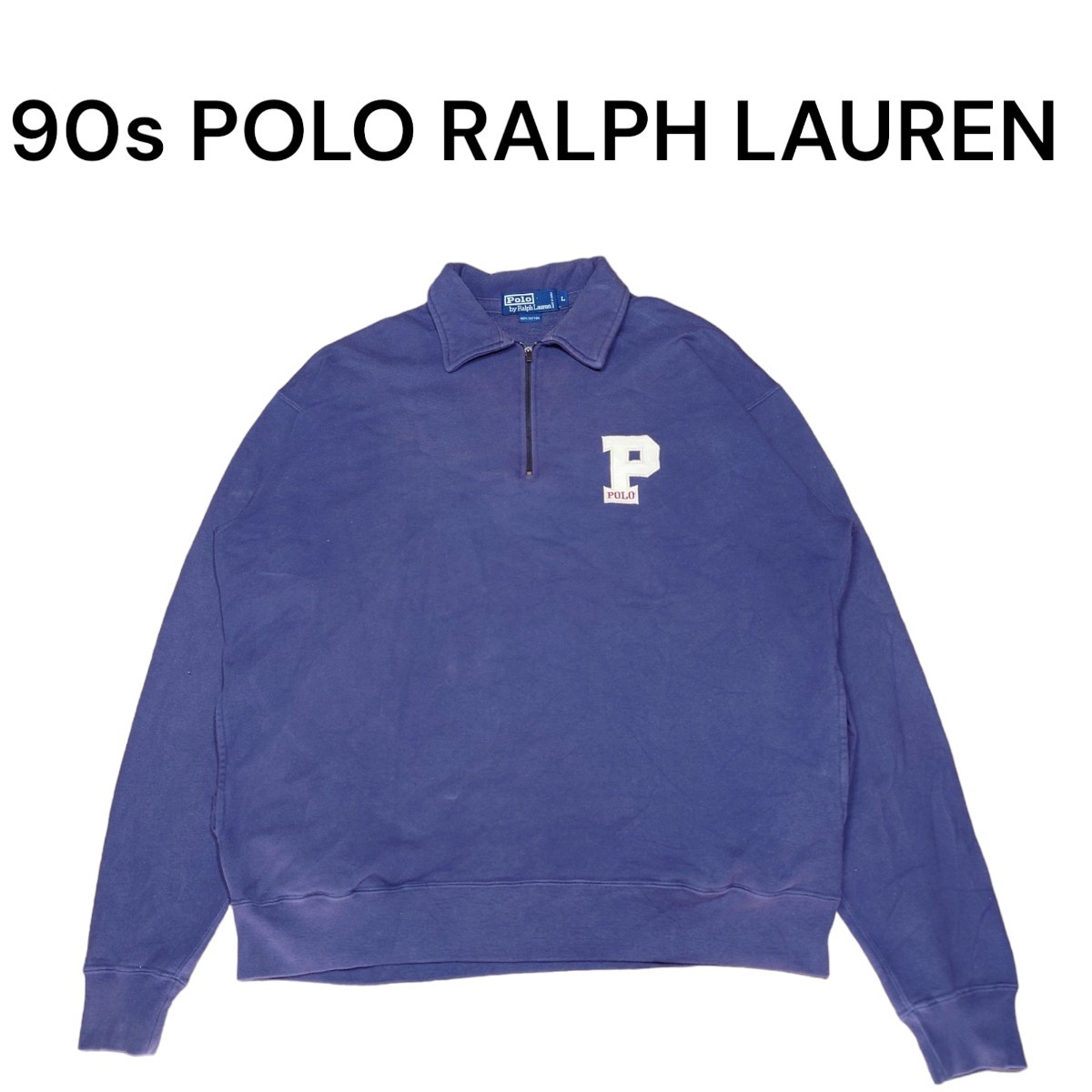 90s ポロラルフローレン 襟付きハージップ スウェットトレーナー ビッグロゴ