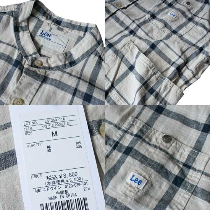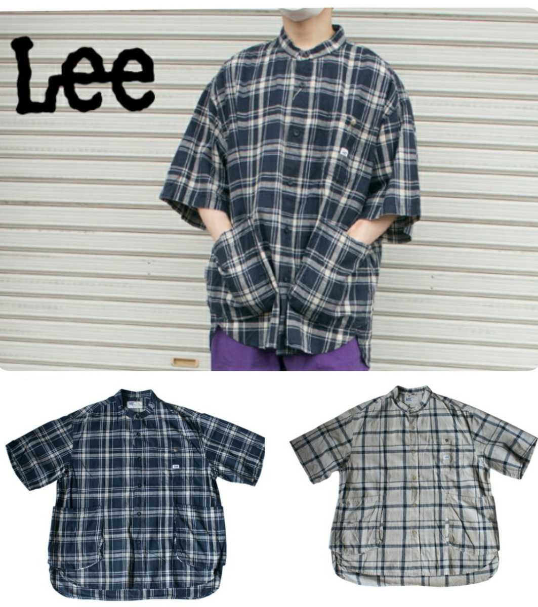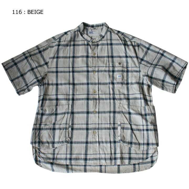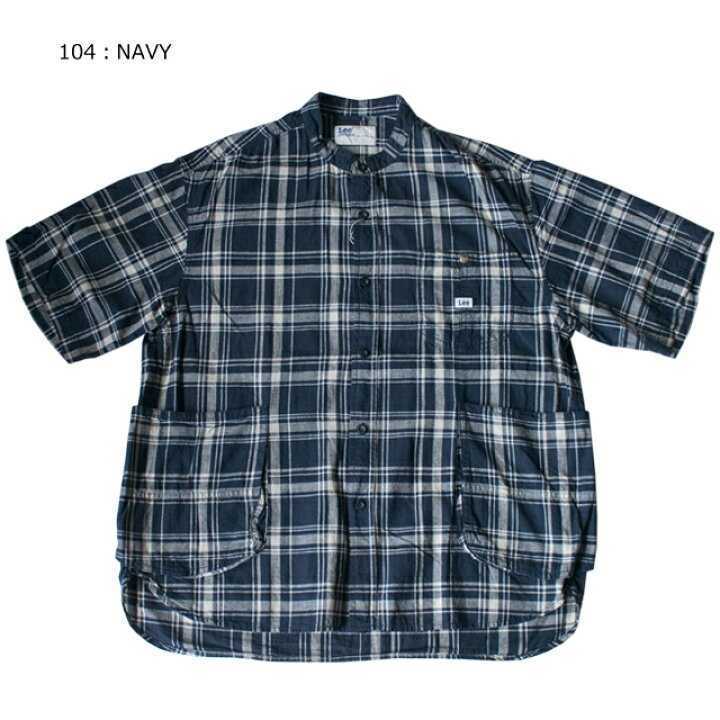 Lee リーのサイドに付いた大きなワークポケットがアクセントなノーカラー半袖シャツです。 おしゃれなオリジナルのチェック柄でスタイルを選ばず、合わせやすいアイテムです。 ゆったりとしたシルエットなのでTシャツの上の羽織としてもおすすめです。
