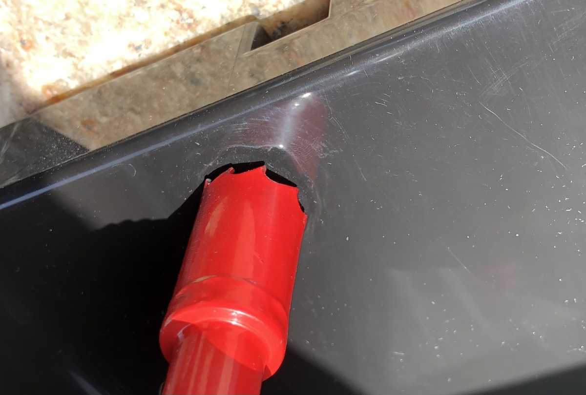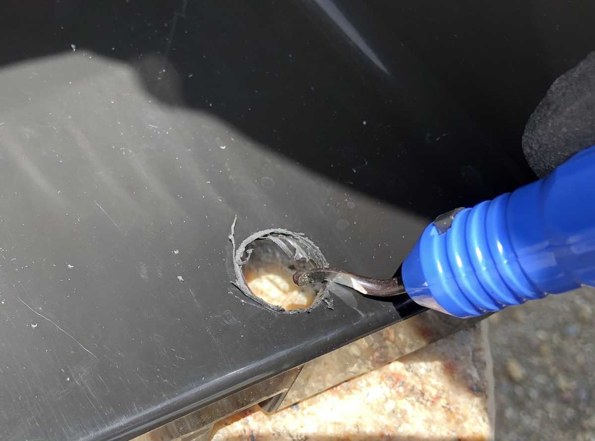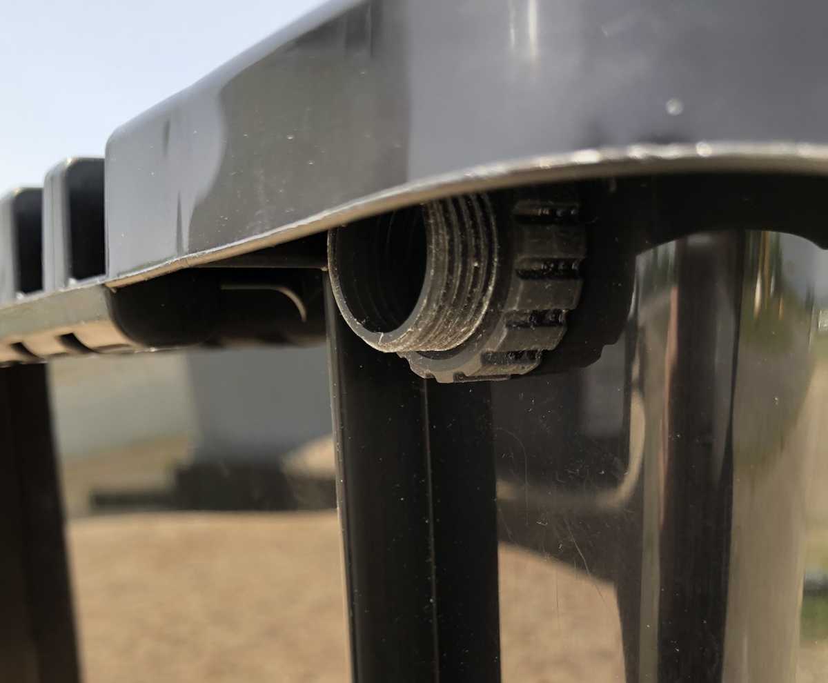タライ、トロ舟の好きな位置に18ミリの穴を開けて、裏から手回しで留めるだけ