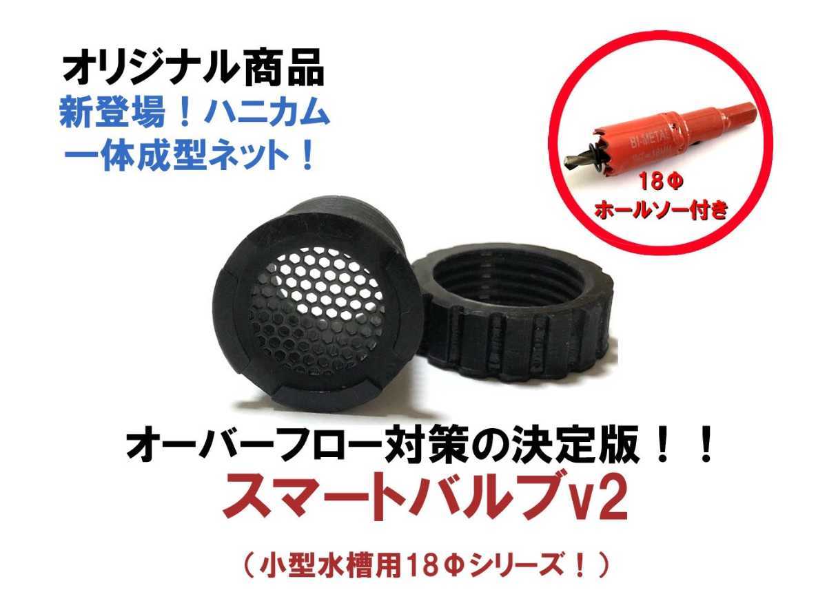 【台風、雨対策!】オーバーフロー対策の決定版!中小型水槽用スマートバルブv2ハニカムネット(18Φ)12個+18mmホールソーのセット!