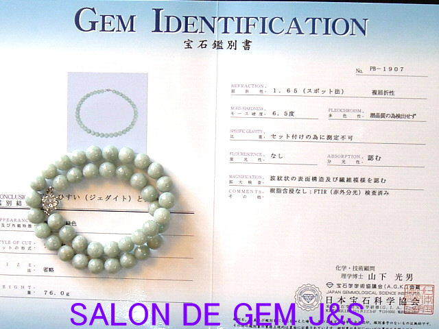 ★★★SALON DE GEM J&S 特選アクセサリー『ジェダイト(翡翠)』宝石鑑別書付★★★(PB-1907)