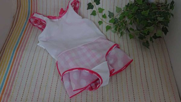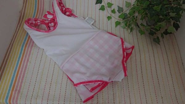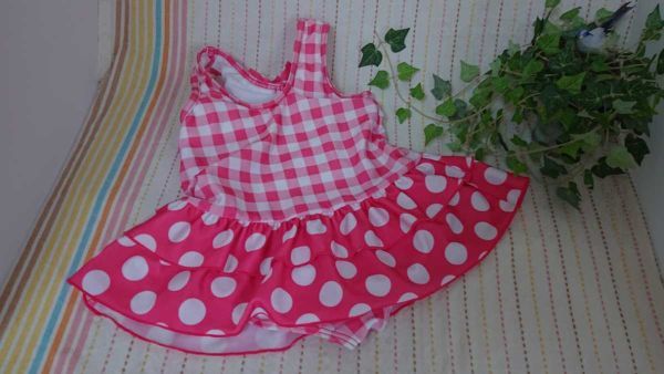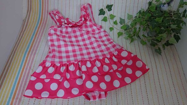 チェック&水玉柄のワンピース水着です