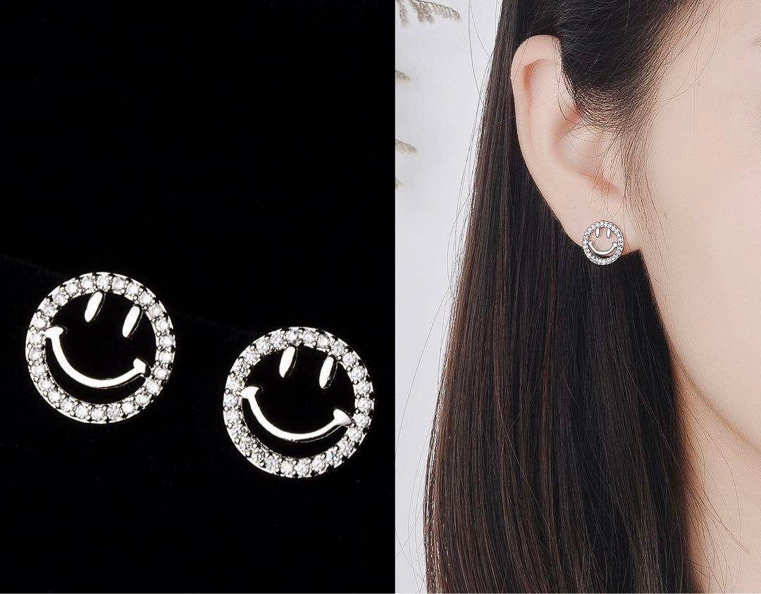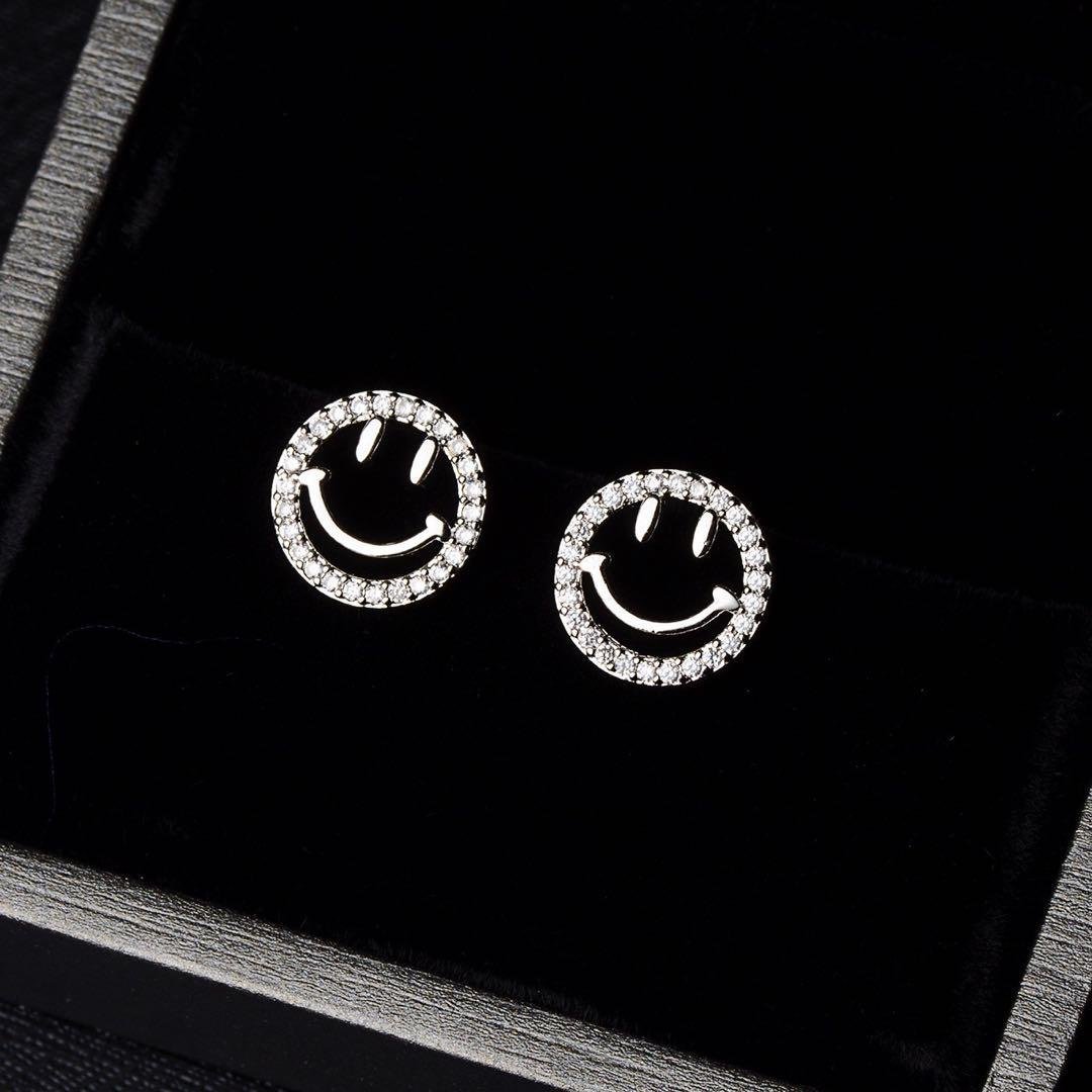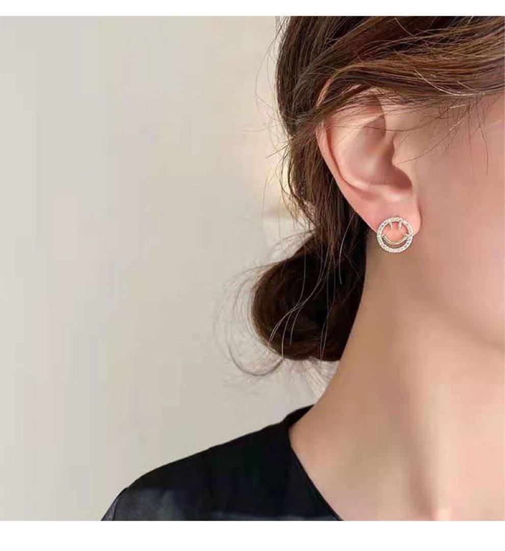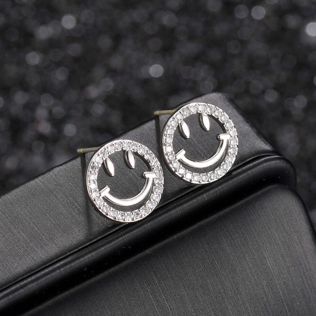 新品 スマイルのピアス レディースニコニコピアス ラインストーンピアス シルバー925 ピアス アレルギー対応