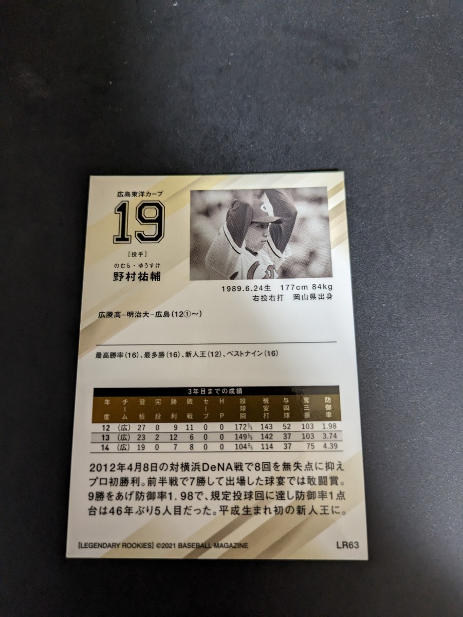 即決★BBM2021 広島カープ 野村祐輔 ルーキー伝説